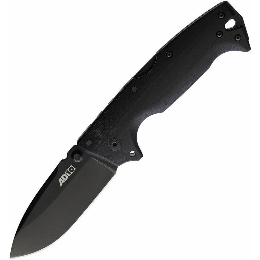 Cold Steel AD-10 – je moderní zavírací nůž vyrobený ze super materiálů. Základem je 101 mm dlouhá čepel s dutým výbrusem z oceli S35VN. Je odolná, tuhá a je možné u ní dosáhnout výborné ostrosti. Ta má pak dlouhou životnost.