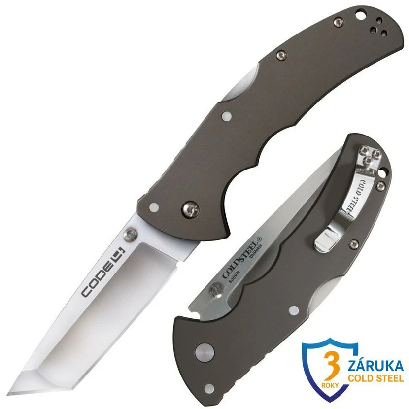 Cold Steel Code 4 Tanto pt. Plain Edge – je lehký a odolný EDC nůž s tanto čepelí. Díky pojistce Tri-ad Lock je velmi pevný a stabilní. Je určený pro militantně smýšlející uživatele, bezpečnostní složky, armádu, ale využijete ho pro každodenní nošení do města nebo přírody.