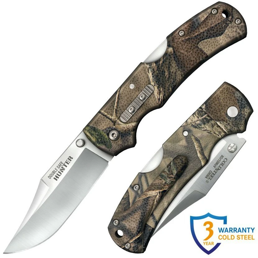 Cold Steel Double Safe Hunter – je speciálně navržený pro myslivce, lovce rybáře a jejich potřeby. Jedná se o zaražení zvířete, vyvržení, stažení z kůže. Takový nůž musí být ostrý, dobře brousitelný, odolný, nesmí mu vadit vlhkost a krev, ale protože svůj lovecký nůž nejednou ztratíte, výhodou je dostupná cena.