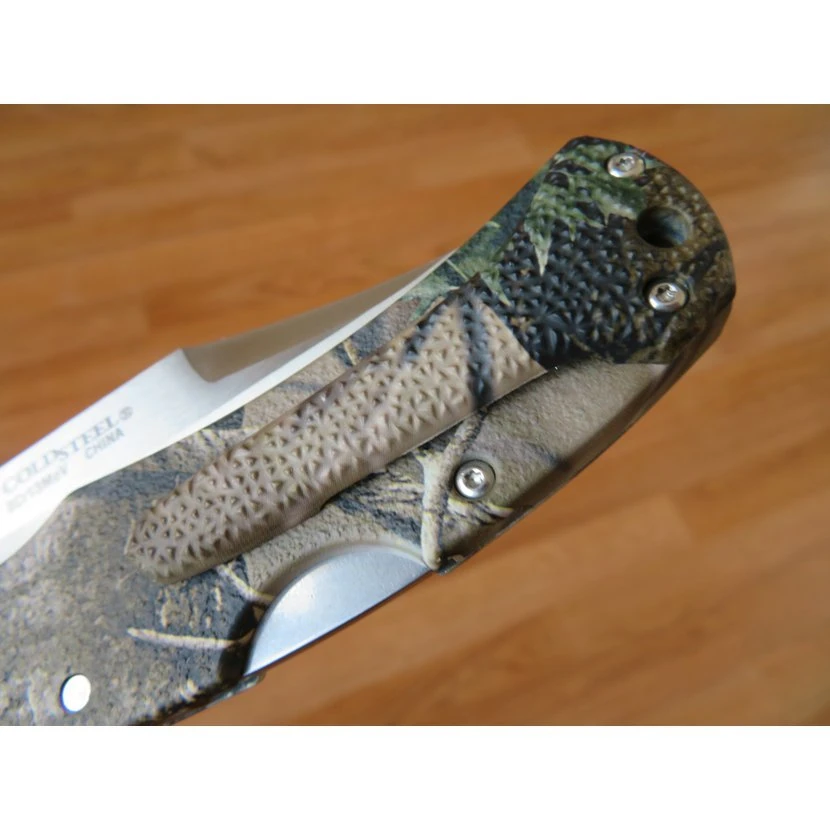 A právě těmto požadavkům při svém návrhu Cold Steel vyšel v ústrety. Široká čepel nože je vyrobena z nerezové oceli 8Cr13MoV. Tvar je zvolen tak, aby nůž velmi dobře řezal.