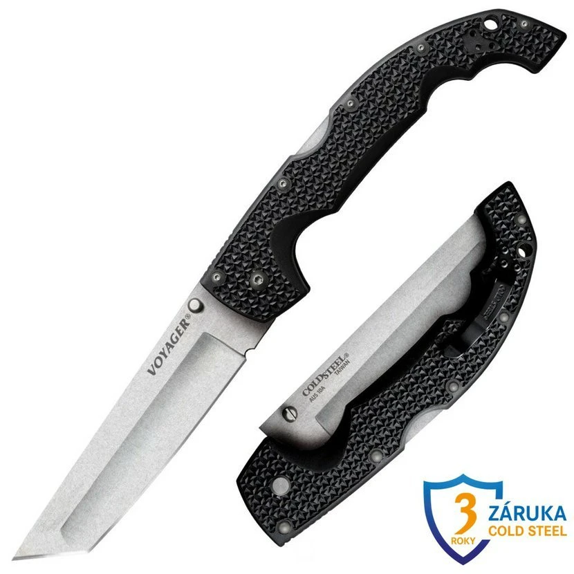 Cold Steel Extra Large Voyager Tanto –je obrovský a díky čepeli atypický zavírací nůž s délkou 304 mm s velmi spolehlivou pojistkou. Rukojeť je velmi dobře tvarovaná, nesmeká se.