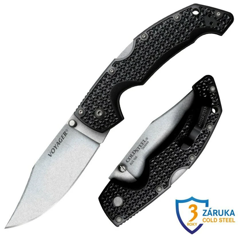 Cold Steel Large Voyager Clip – je technologicky zajímavý zavírací nůž s velmi spolehlivou pojistkou. Rukojeť je velmi dobře tvarovaná, nesmeká se. Základem je 101 mm dlouhá hladká čepel z oceli AUS 10a.