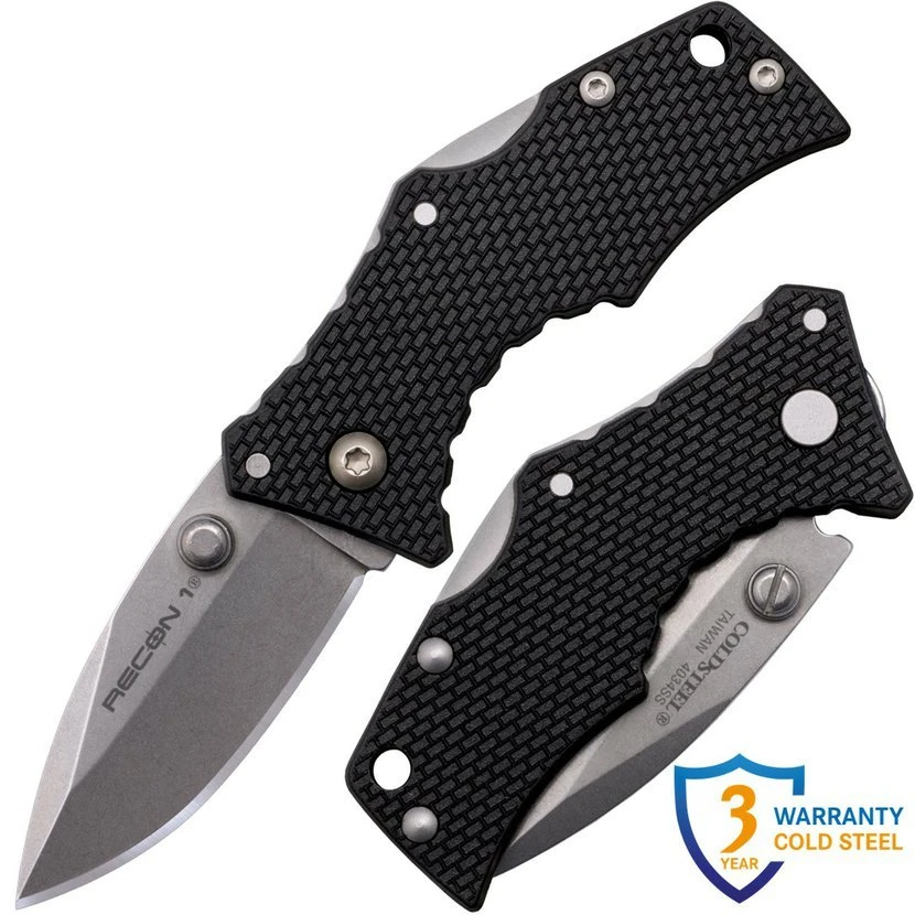 Cold Steel Micro Recon 1 Spear Point – je kompaktní zavírací EDC nůž. Základem je 50 mm dlouhá čepel tradičního tvaru z nerezové oceli 4034. Na čepeli je čep pro jednoruční otevírání.