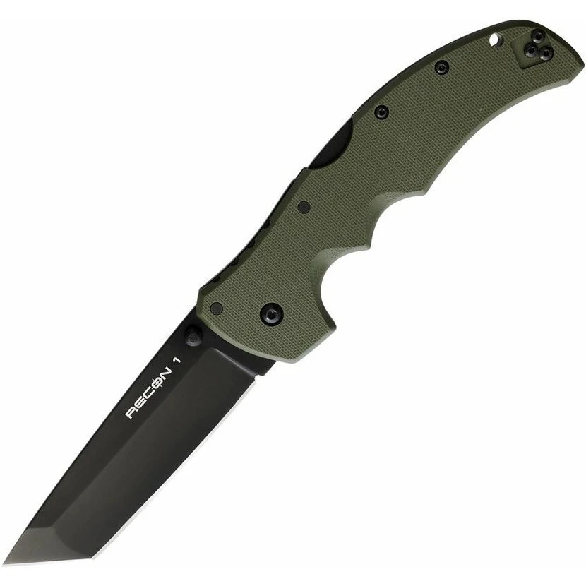 Cold Steel Recon 1 Lockback Tanto OD – zavírací taktický nůž s čepelí Tanto dlouhou 101 mm a rukojetí z velmi odolného materiálu G-10. Na čepeli je oboustranný čep pro jednoruční otevírání.