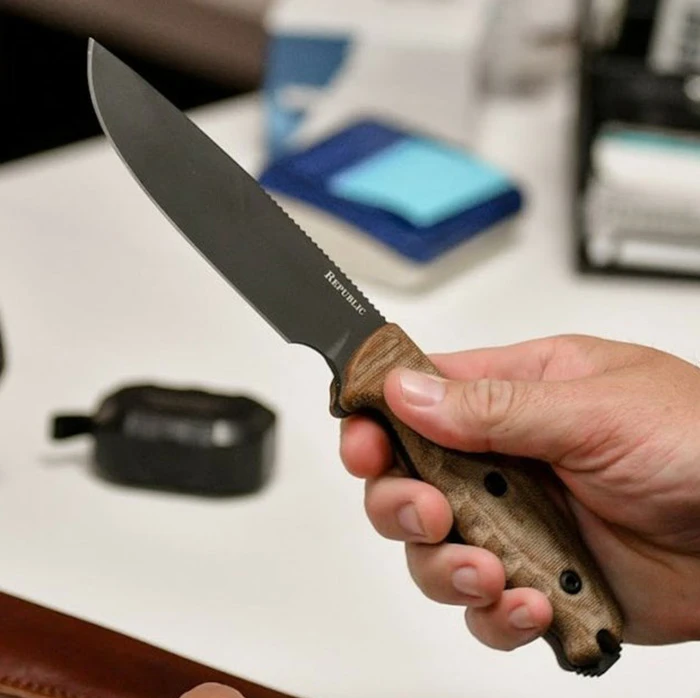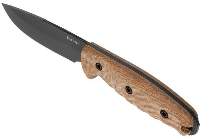Cold Steel Republic Bushcraft – všestranný outdoorový nůž s černou povrchovou úpravou čepele, což zvyšuje odolnost proti korozi. Rukojeť z Micarty skvěle padne do ruky, výborně se drží.