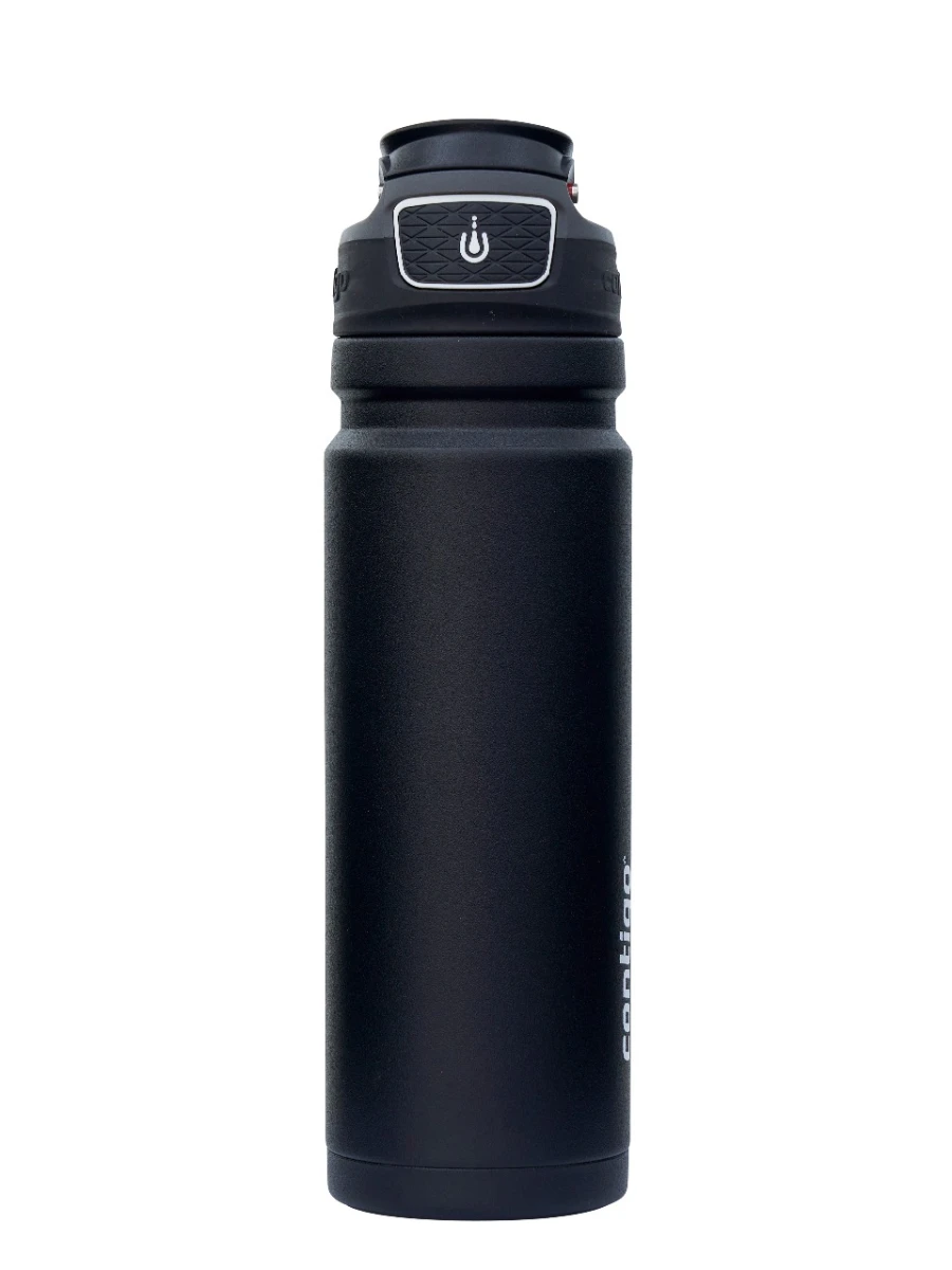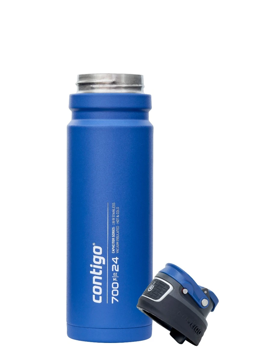 Contigo Autoseal Free Flow 720 ml: Praktická termoláhev pro vysoce náročné outdoorové nadšence. Má dvoustěnnou vakuovou izolaci z nerezové oceli 18/8, která udrží nápoje horké až 10 hodin, a studené až 29 hodin. Víčko lze snadno ovládat pomocí jedné ruky. Na víčku láhve najdete inovativní kryt hrdla, který zabraňuje vylití a ušpinění. Navíc zde máte praktické poutko, díky kterému se bude termoláhev pohodlně nosit. Zámek na víku zajistí nechtěnému otevření a vylití obsahu.
