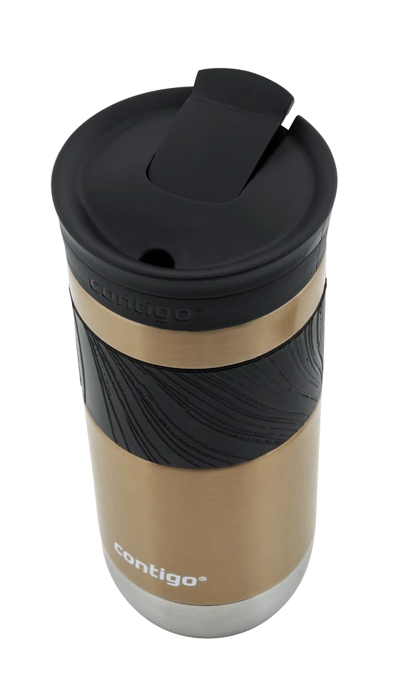 Contigo Byron 2.0: elegantní termohrnek, vyrobený z nerezové oceli s vakuovou izolací. Hrnek je vybaven těsným víčkem s s výklopným otevíráním, které lze ovládat jedním prstem. Takto zajištěný hrnek je pevně uzavřen a funguje jako termoska, díky speciálnímu uzávěru se nic nerozlévá ani nekape. Další výhodou je, že se hrnek nezahřívá a nepálí ruce. Silikonová rukojeť a speciálně navržené víčko vám umožní používat hrnek na cestách, např. při jízdě autem, vlakem atd.