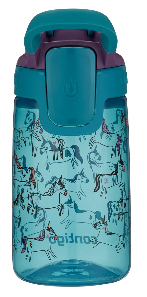 Contigo Jessie 420 ml: dětská hydratační lahvička opatřená automatickým uzavíracím systémem AUTOSEAL®, díky němuž se otvor na pití sám uzavře, jakmile dítě pustí láhev z ruky (prevence rozlití nápoje). Velké a snadno dostupné otvírací tlačítko je uzpůsobeno přesně pro malé ručičky tak, aby je dítě mohlo stisknout více prsty.