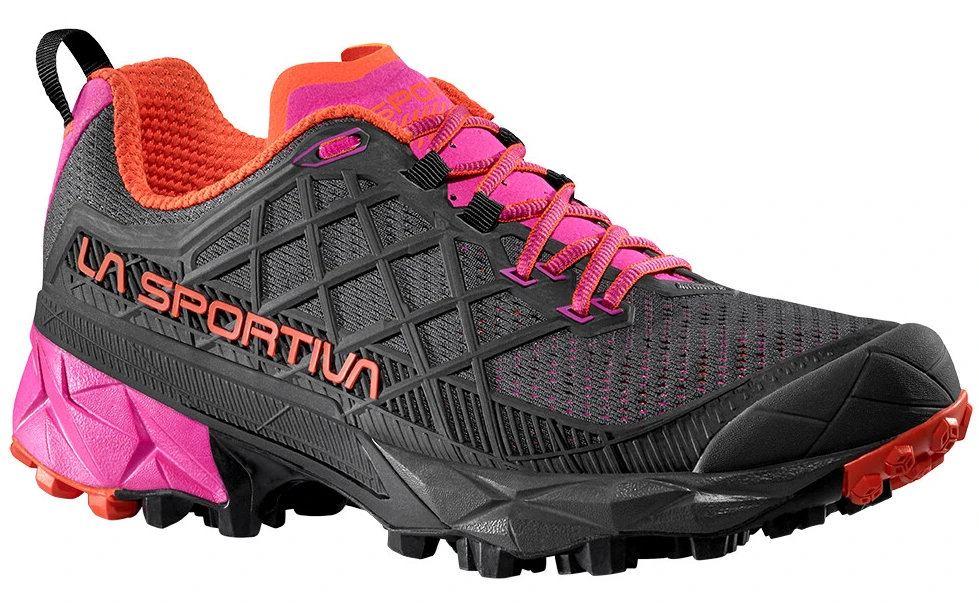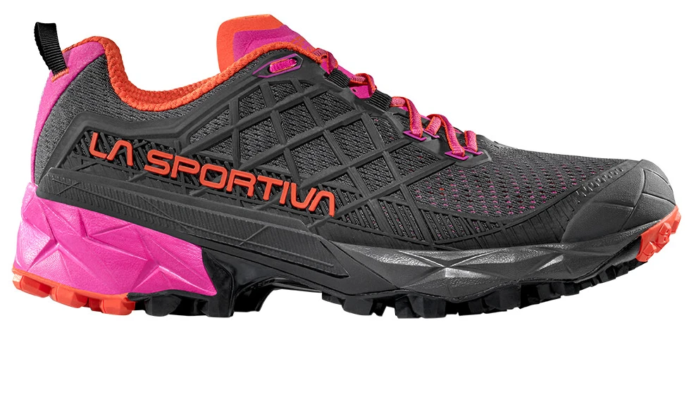 La Sportiva Akyra II Woman – dámské běžecké boty určené na trailové běhy, horské běhy a dlouhé tratě. Bytelný svršek, podrážka s drapáky do terénu, masivní tlumení došpalu IBS systémem.
