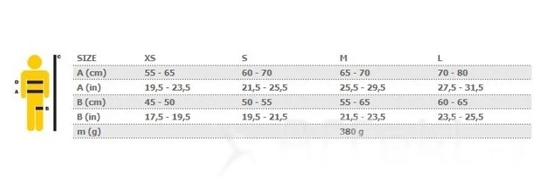 Hmotnost – velikost M: 365 g (+/- 15 g)