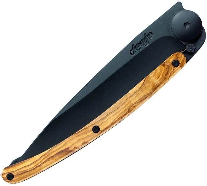 Deejo Black 27g olive wood: jednoduchý ultralehký kapesní nůž s elegantní černou čepelí. Nůž váží pouhých 27 gramů. Rukojeť z olivového dřeva zaujme atraktivní kresbou. Pomalu rostoucí dřevo je tvrdé a pevné. Každý kus dřeva je originál.