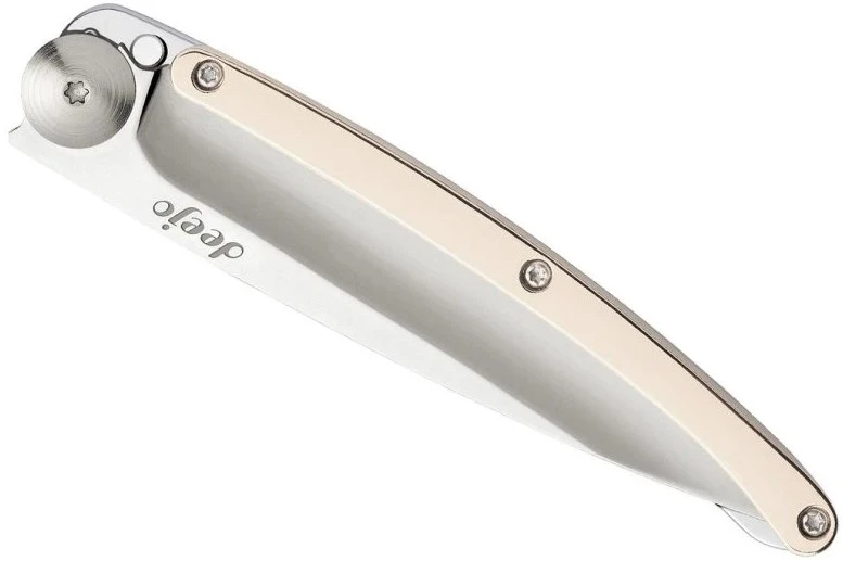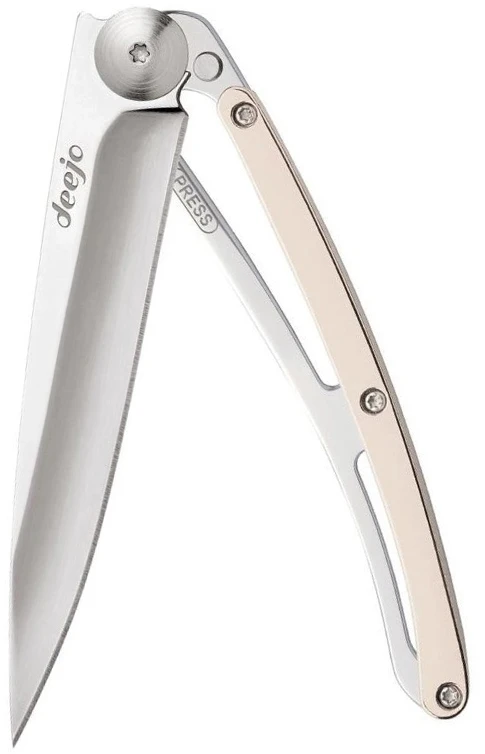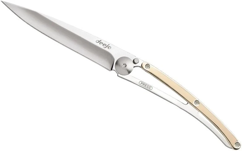 Deejo Gold Mirror 37g 18kt pink gold: limitovaná edice nože Deejo s rukojetí pokovenou 18-ti karátovým růžovým zlatem a čepelí v zrcadlovém lesku Nůž je velmi lehký, váží pouhých 37 g, zaujme svým netradičním designem.