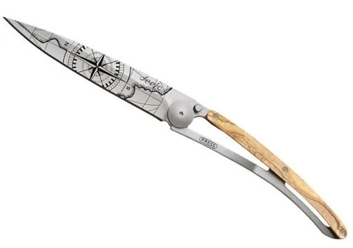 Deejo Tattoo 27g olive wood: stylový ultralehký kapesní nůž, váží pouhých 27 gramů. Rukojeť z olivového dřeva zaujme atraktivní kresbou. Pomalu rostoucí dřevo je tvrdé a pevné. Každý kus dřeva je originál.