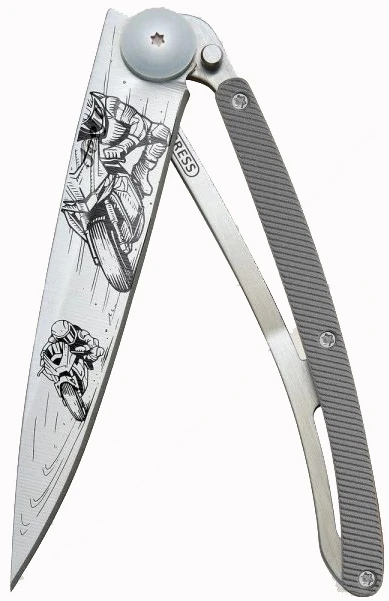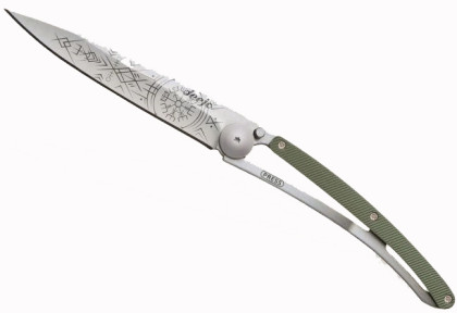 Deejo Tattoo 37g aluminium: ultralehký kapesní nůž s čepelí s povrchovou úpravou šedý titan. Hmotnost nože je úžasných 37 g. Rukojeť z barevně eloxovaného hliníku vyniká svou odolností.