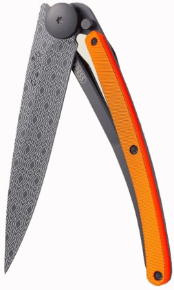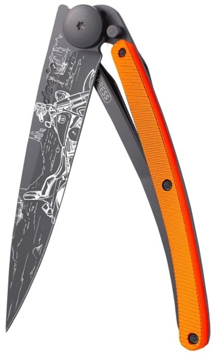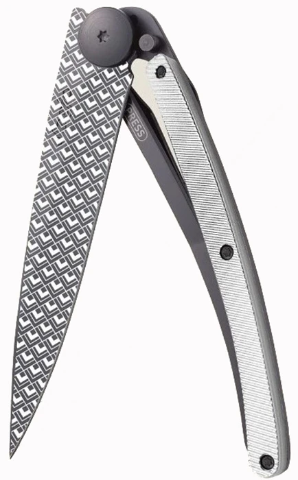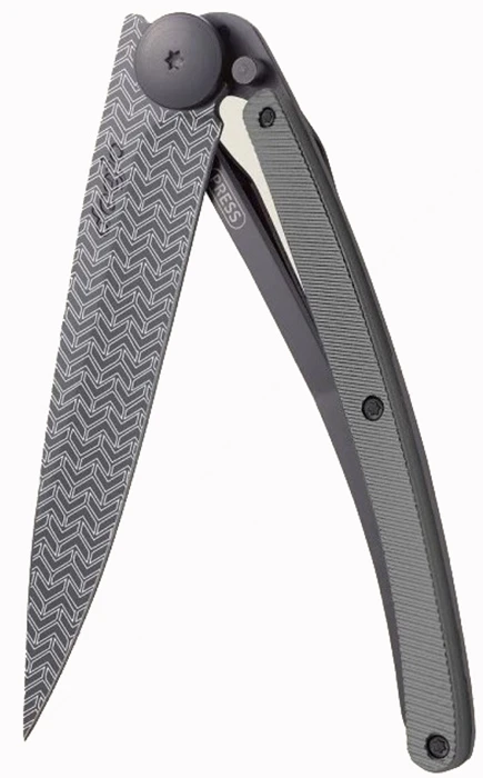 Deejo Tattoo 37g aluminium: ultralehký kapesní nůž s čepelí s povrchovou úpravou černý titan. Hmotnost nože je úžasných 37 g. Rukojeť z barevně eloxovaného hliníku vyniká svou odolností.