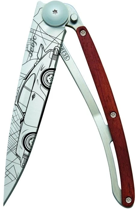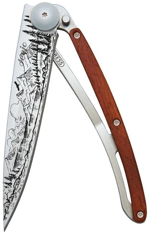 Deejo Tattoo 37g coralwood: ultralehký kapesní nůž s hladkou čepelí a tetováním s různými motivy. Hmotnost nože je úžasných 37 g. Rukojeť z exotického dřeva coralwood vyniká svým elegantním načervenalým odstínem.