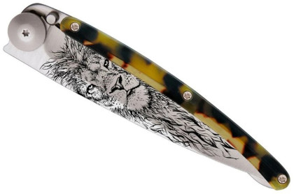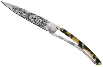 Deejo Tattoo 37g dark turtle: ultralehký kapesní nůž se světle šedou matnou čepelí a tetováním s různými motivy. Hmotnost nože je úžasných 37 g. Rukojeť ze syntetické želvoviny pasuje nůž na elegantní doplněk.