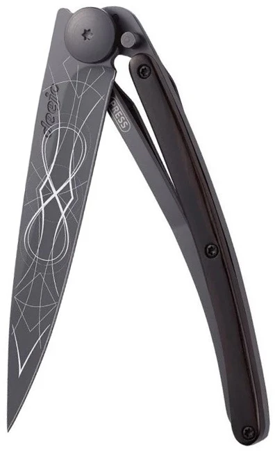 Deejo Tattoo Black 27g ebony wood: elegantní ultralehký kapesní nůž o hmotnosti pouhých 27 gramů. Rukojeť z tvrdého ebenového dřeva je leštěná. Temné dřevo skvěle odolá povětrnostním vlivům.