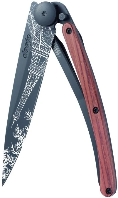 Deejo Tattoo Black 37g coralwood: ultralehký kapesní nůž s hladkou čepelí a tetováním s různými motivy. Hmotnost nože je úžasných 37 g. Rukojeť z exotického dřeva coralwood vyniká svým elegantním načervenalým odstínem.