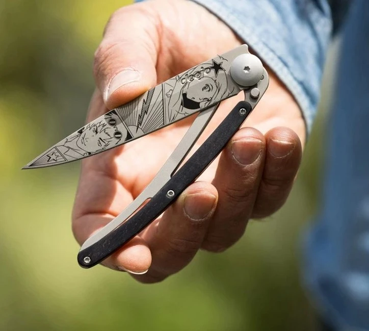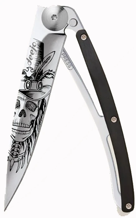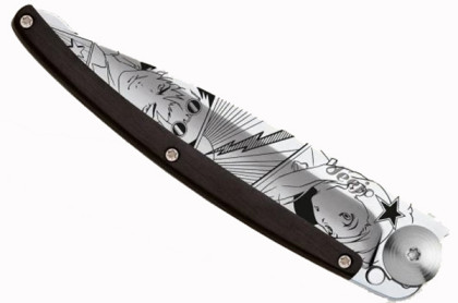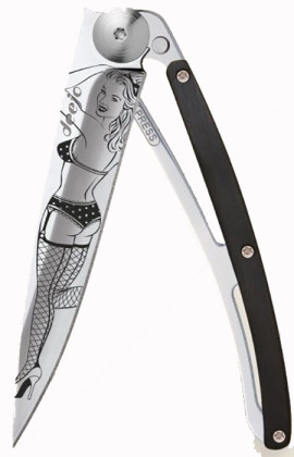 Deejo Tattoo Mirror 37g ebony wood: ultralehký kapesní nůž s čepelí s vysokým leskem a tetováním s různými motivy. Hmotnost nože je úžasných 37 g. Rukojeť z tvrdého ebenového dřeva je leštěná. Temné dřevo skvěle odolá povětrnostním vlivům.