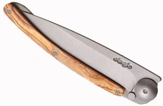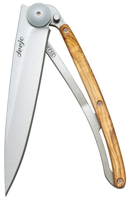 Deejo Wood natural 27g olive: jednoduchý ultralehký kapesní nůž o hmotnosti pouhých 27 gramů. Rukojeť z olivového dřeva zaujme atraktivní kresbou. Pomalu rostoucí dřevo je tvrdé a pevné. Každý kus dřeva je originál, střenka nože může mít odlišnou kresbu