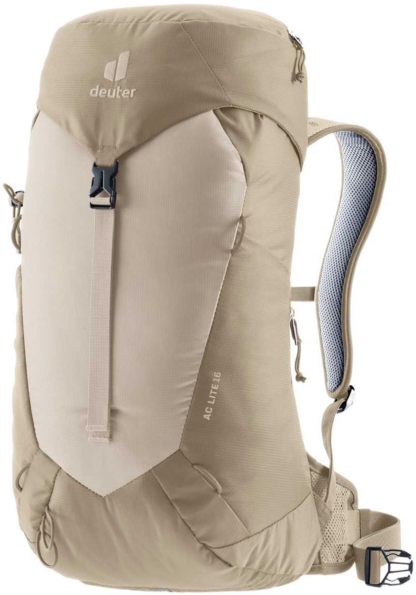 Malý turistický batoh Deuter AC Lite 16: o objemu 16 litrů má jednu komoru s plněním zvrchu. Váha 900 g. Boční praktické kapsy, zádový systém tvořený síťkou, který umožňuje odvětrání zad, upnutí turistických hůlek. Batoh se hodí pro turistiku, cestování.