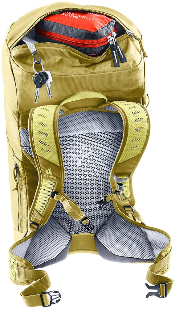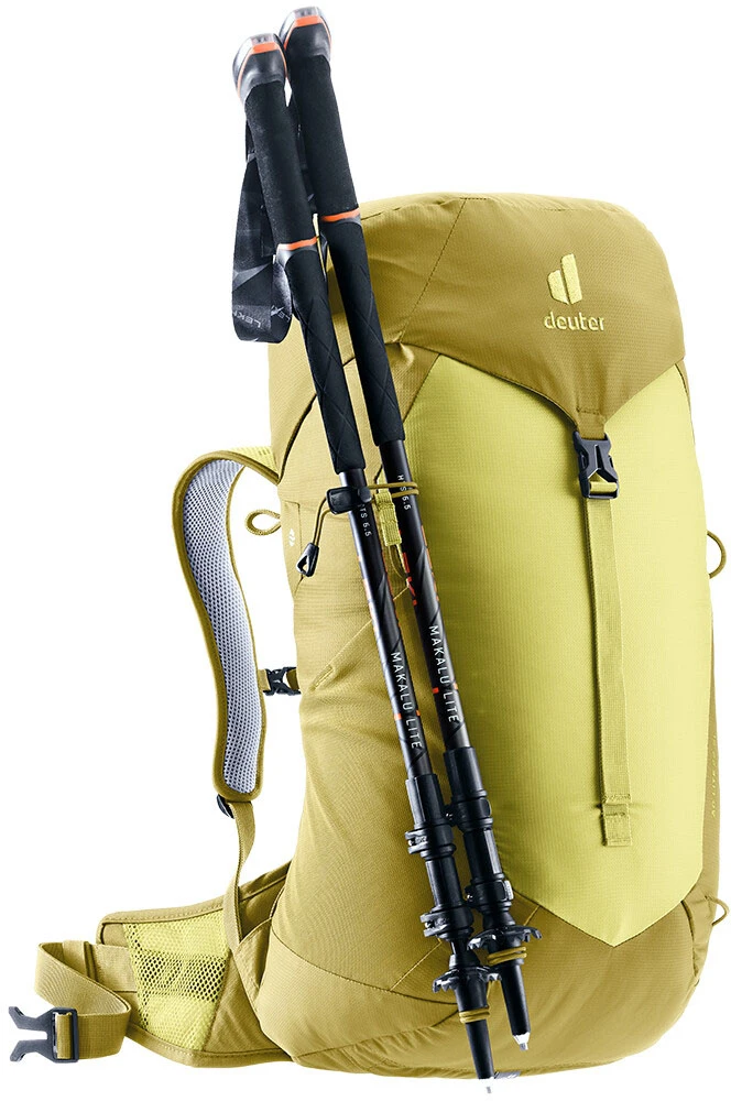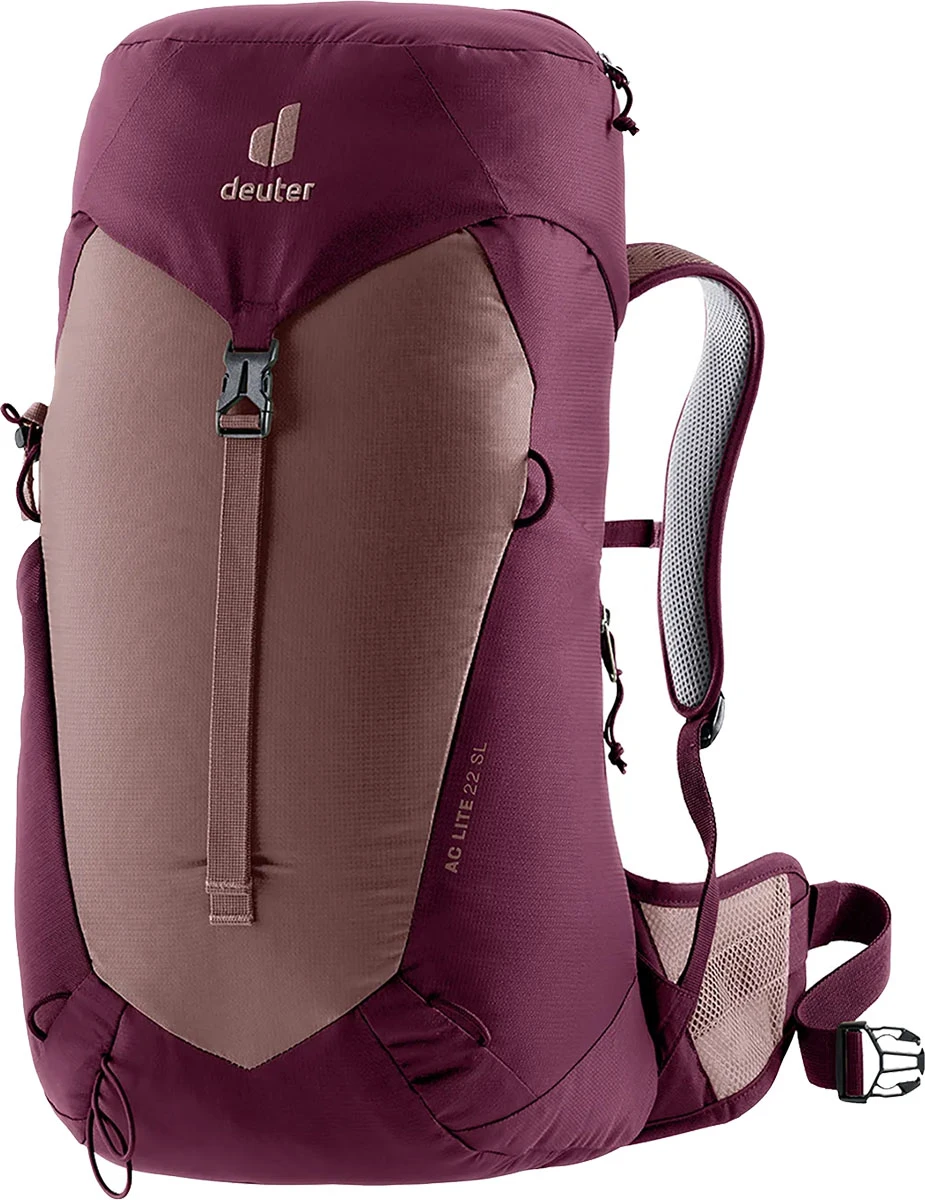Deuter AC Lite 22 SL: dámský turistický batoh má jednu komoru s plněním z vrchu. Váha 930 g. Boční síťované kapsy, zádový systém tvořeným síťkou, který umožňuje odvětrání zad, upnutí turistických hůlek.