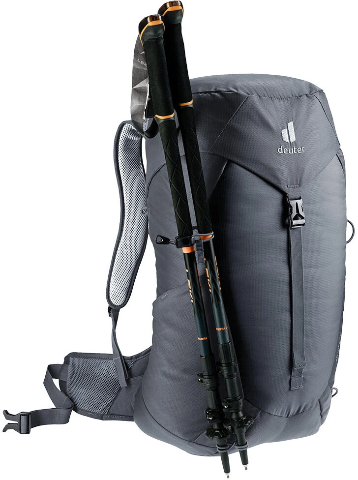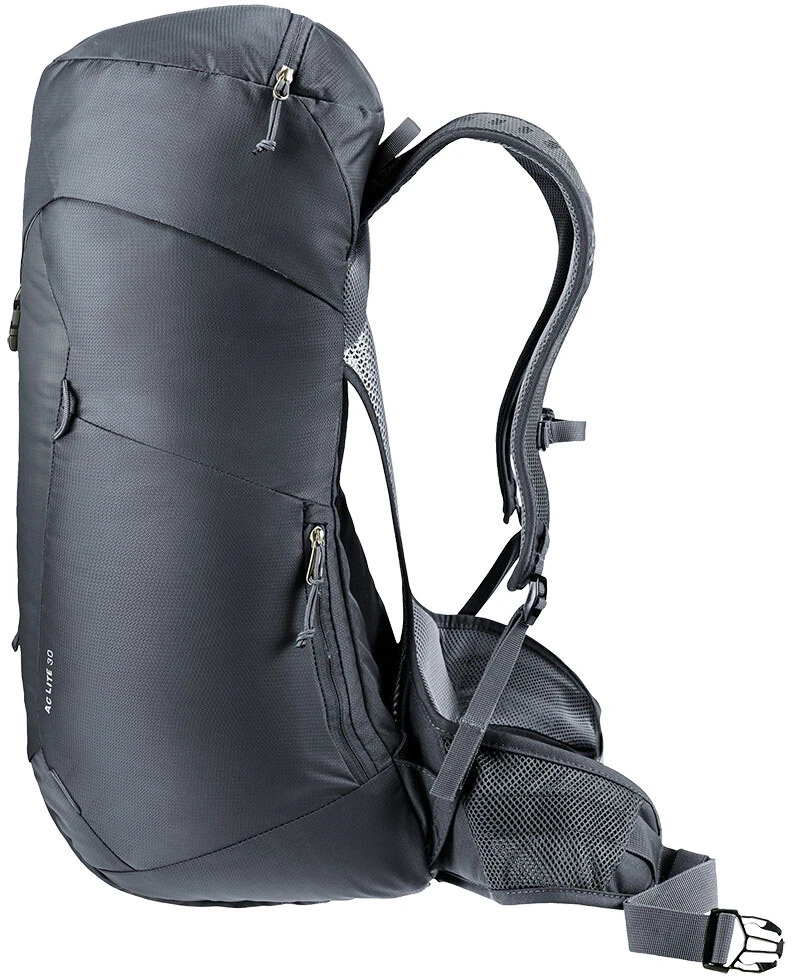 Deuter AC Lite 30: Turistický batoh o objemu 30 litrů. Má síťkový zádový systém Aircomfort, který je maximálně účelně řešený pro batohy menšího objemu. Odvětráním zad získáte neocenitelné pohodlí během každodenního nošení především v letních měsících. Batoh má jednu komoru, kterou je možné plnit vrchem. Nechybí ani bederní pás, přední kompresní popruh a praktická prsní spojka, které odlehčí zádům. Je ideální na celodenní výlet nebo lehčí turistiku.