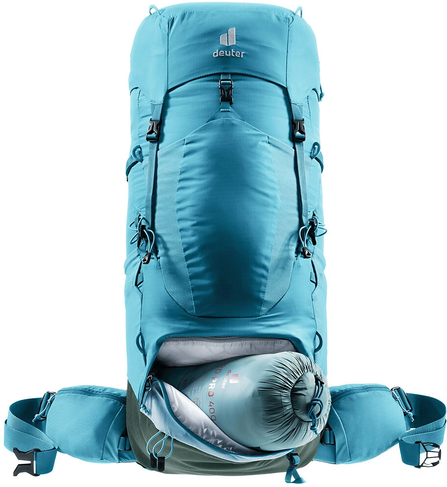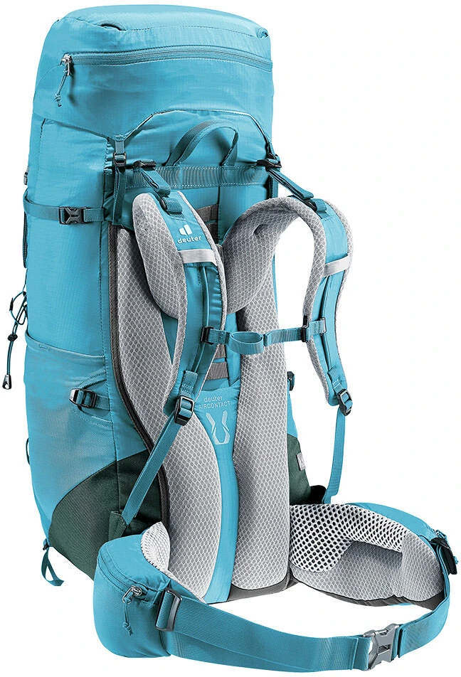 Deuter Aircontact Lite 45+10 SL – dámský outdoorový batoh se dvěma komorami určený přímo pro ženy. Velikost hlavní komory je 45 litrů + dalších 10 litrů získáte nastavením horní části. Je výhodný pro cestovatelky na turistiku, kde se nese batoh dlouhou dobu na zádech. Tam oceníte kvality zádového systému - je tvořen funkční pěnou s otevřenými kanálky, která zajišťuje perfektní ventilaci.