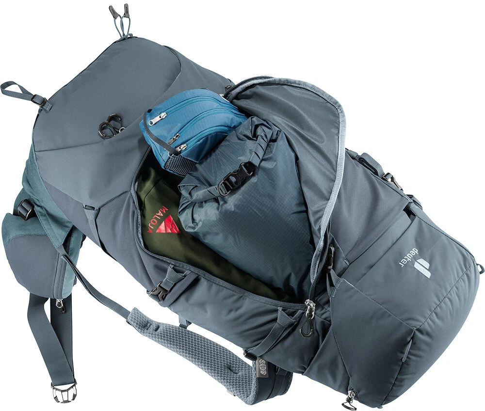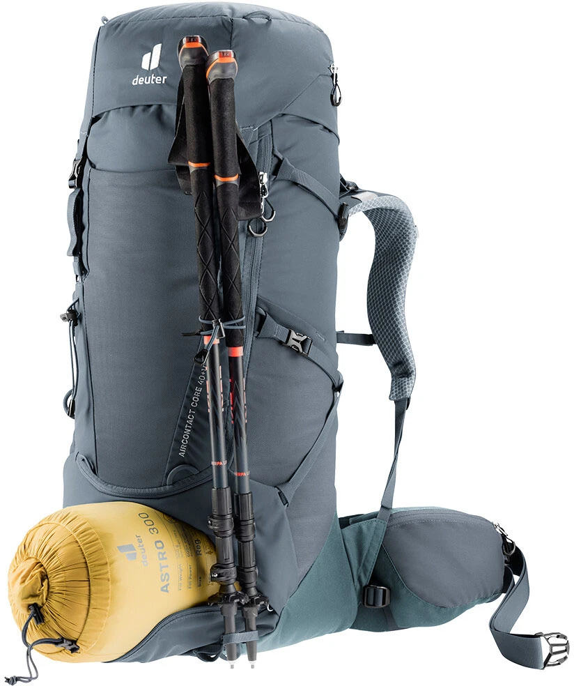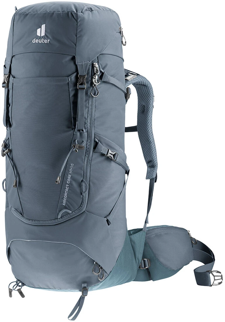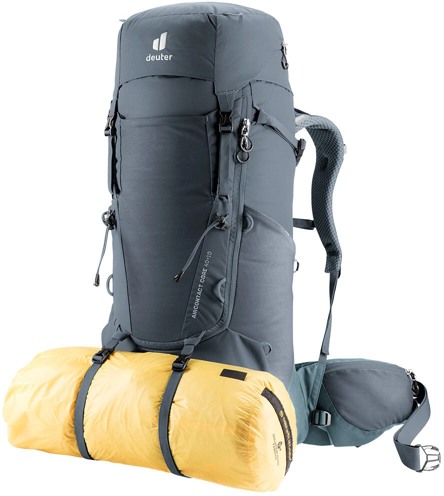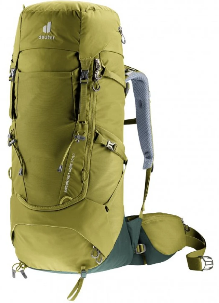 Deuter Aircontact Core 40+10: dvoukomorový batoh o objemu 40 litrů vhodný na dlouhé treky. Do hlavní komory se vejde vše potřebné, navíc se dá zvětšit o dalších 10 litrů pomocí nastavitelného víka. Do spodní komory můžete dát spacák či karimatku.