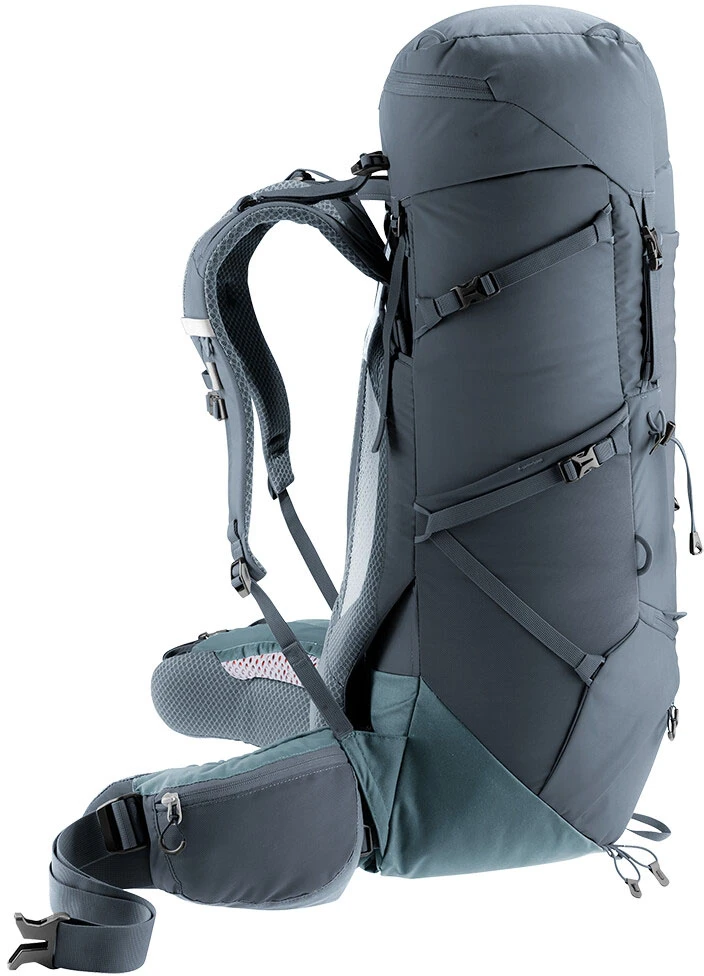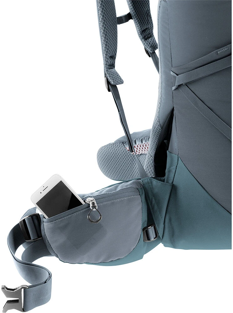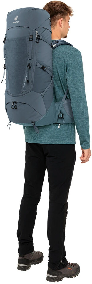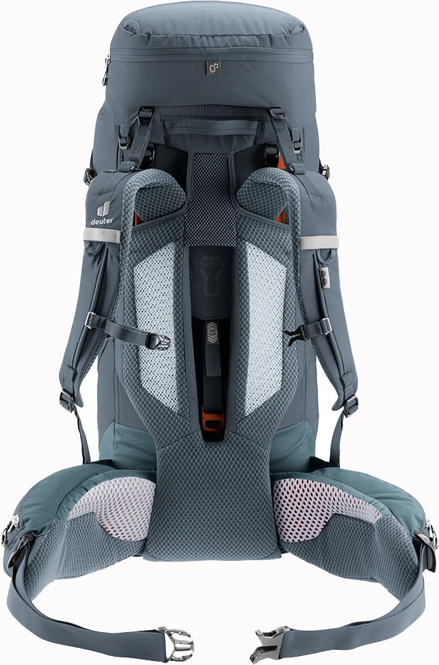 Batoh má kvalitní nastavitelný zádový systém Aircontact se síťovinou Air Spacer a ventilačním kanálem, což zajistí pohodlné nošení i v teplejším počasí. Ramenní popruhy ActiveFit jsou anatomicky tvarované s nastavitelným hrudním popruhem. Bederní pás je polstrovaný a anatomicky tvarovaný pro efektivní rozložení zátěže. Navíc má dvě kapsy na zip na mobil, nebo třeba energetickou tyčinku.