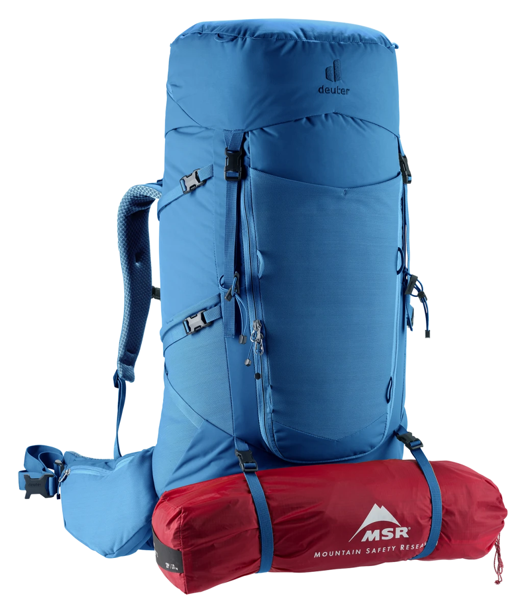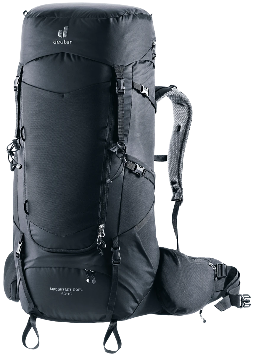 Deuter Aircontact Core 60+10: dvoukomorový batoh o objemu 60 litrů vhodný na dlouhé treky. Do hlavní komory se vejde vše potřebné, navíc se dá zvětšit o dalších 10 litrů pomocí nastavitelného víka. Do spodní komory můžete dát spacák či karimatku.