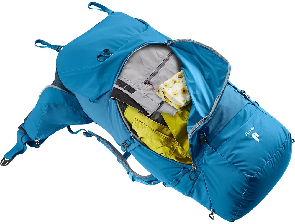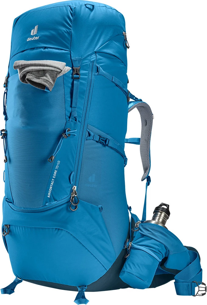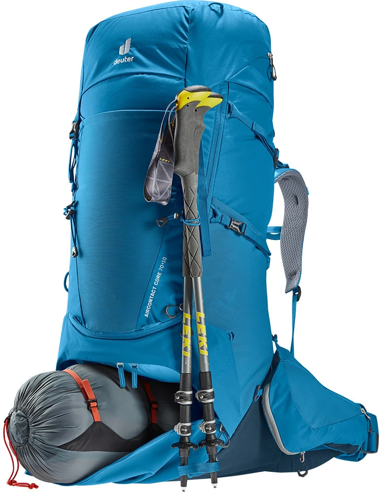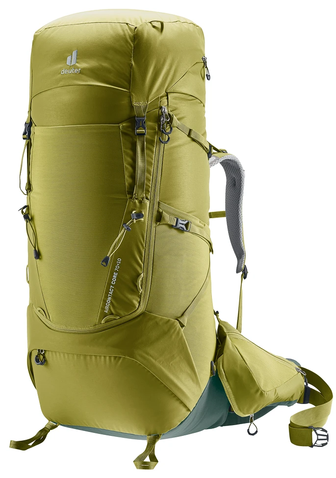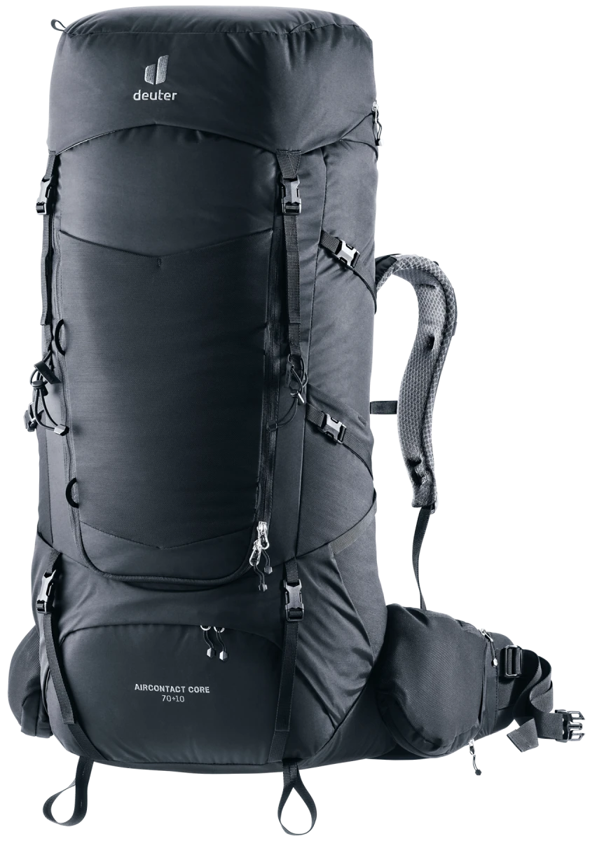 Deuter Aircontact Core 70+10: dvoukomorový batoh o objemu 70 litrů vhodný na dlouhé treky. Do hlavní komory se vejde vše potřebné, navíc se dá zvětšit o dalších 10 litrů pomocí nastavitelného víka. Do spodní komory můžete dát spacák či karimatku.