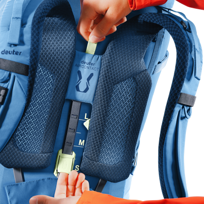 Batoh má kvalitní nastavitelný zádový systém Aircontact se síťovinou Air Spacer a ventilačním kanálem, což zajistí pohodlné nošení i v teplejším počasí. Ramenní popruhy ActiveFit jsou anatomicky tvarované s nastavitelným hrudním popruhem. Bederní pás je polstrovaný a anatomicky tvarovaný pro efektivní rozložení zátěže. Navíc má dvě odnímatelné kapsy o objemu 3 l na zip a v pravé kapse je ještě pouzdro na lahev o objemu 1,5 l.