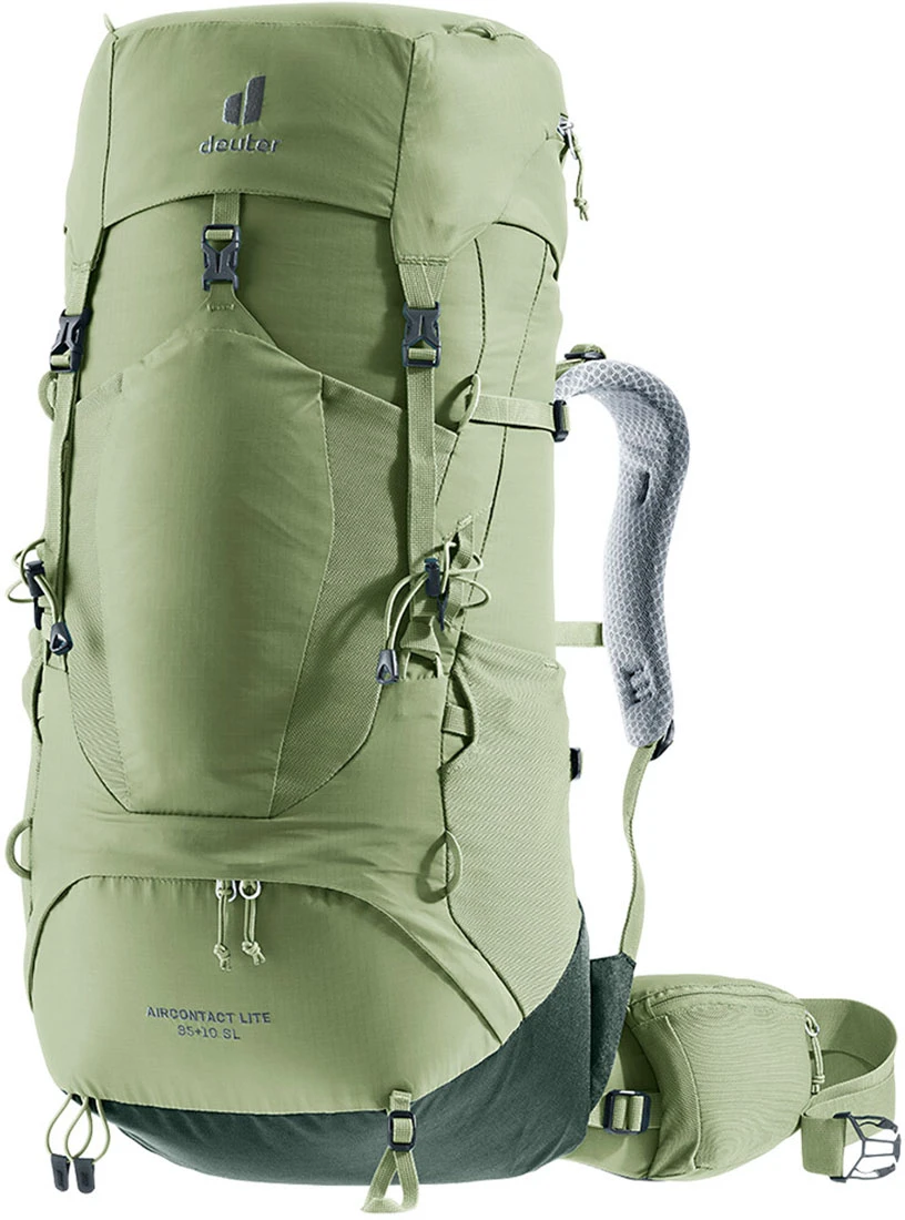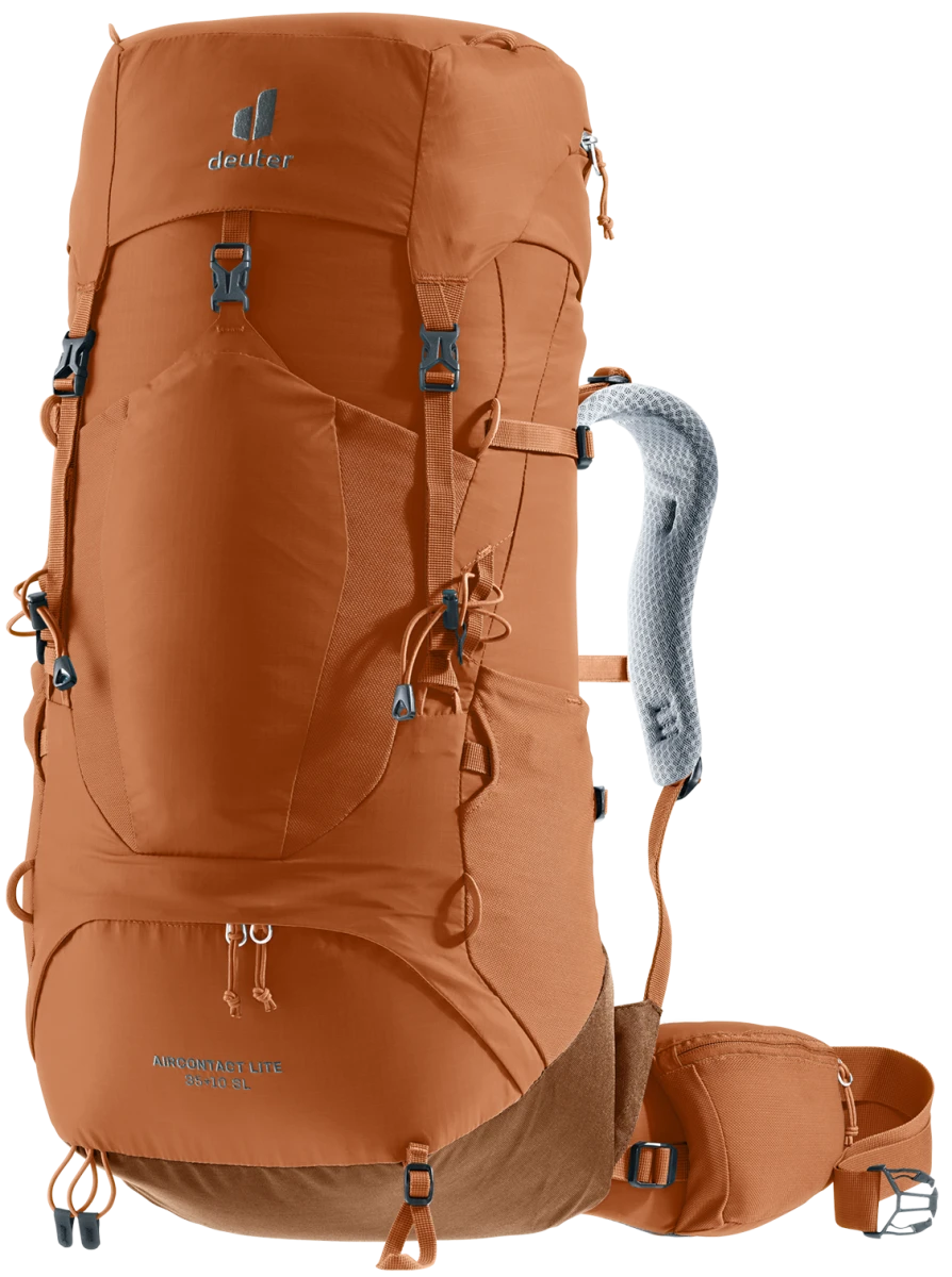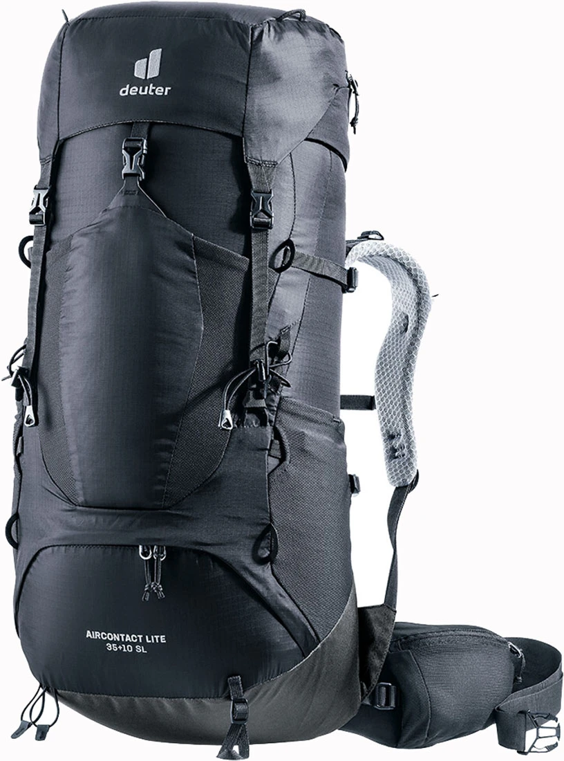 Má dvě zipem dělené komory, které je možné v případě potřeby spojit. Deuter Aircontact Lite 35+10 SL má 2 boční pružné kapsy na láhve. Zádový systém je Aircontact Lite System, je výškově nastavitelný, má dobré odvětrávání. Je určen na vícedenní turistiku, cestování, treking, hodí se však pro ty cestovatelky, které se do tohoto objemu dokážÍ sbalit.