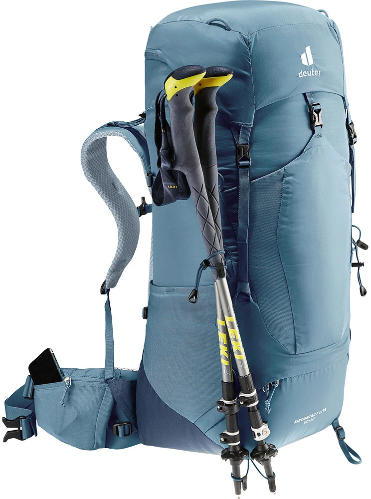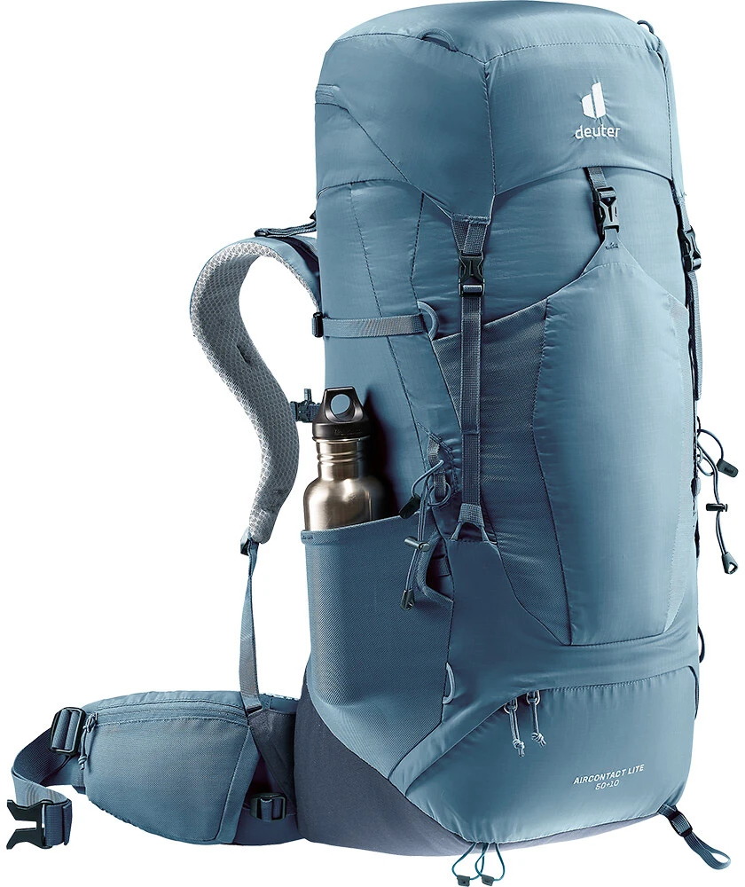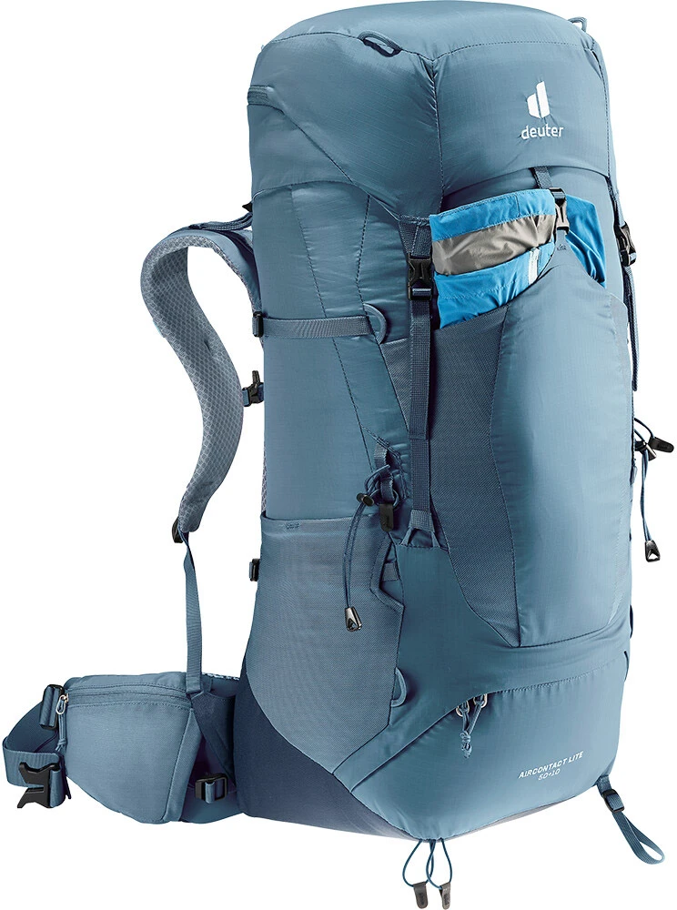 Deuter Aircontact Lite 50+10: je zajímavý a lehký dvoukomorový trekový batoh. Má dvě zipem dělené komory, které jdou dle potřeby spojit. Má 2 boční kapsy na láhve, osvědčený a velmi pohodlný nastavitelný zádový systém Aircontact Lite System. Tento typ zádového systému dobře větrá.