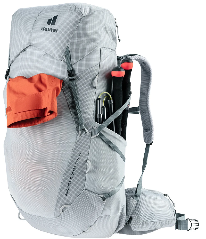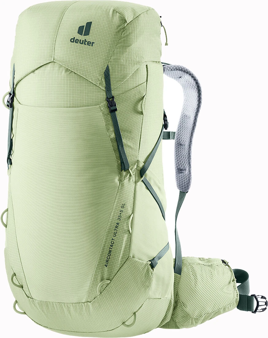 Deuter Aircontact Ultra 35+5 SL: Dámský trekový batoh o objemu 35+5 litrů (celkem 40 litrů). Oblíbí si ho všechny milovnice výletů do přírody, vysokohorské turistiky a horolezectví. Jeho zádový systém má střih přizpůsobený dámské postavě. Ramenní popruhy ActiveFit jsou anatomicky tvarované, a vyrobené z pěny potažené na dotek příjemnou síťovinou. V oblasti ramen najdete stabilizační pásky. Bederní pás je dostatečně široký a měkce polstrovaný. Navíc zde najdete praktickou kapsu na uložení mobilního telefonu.