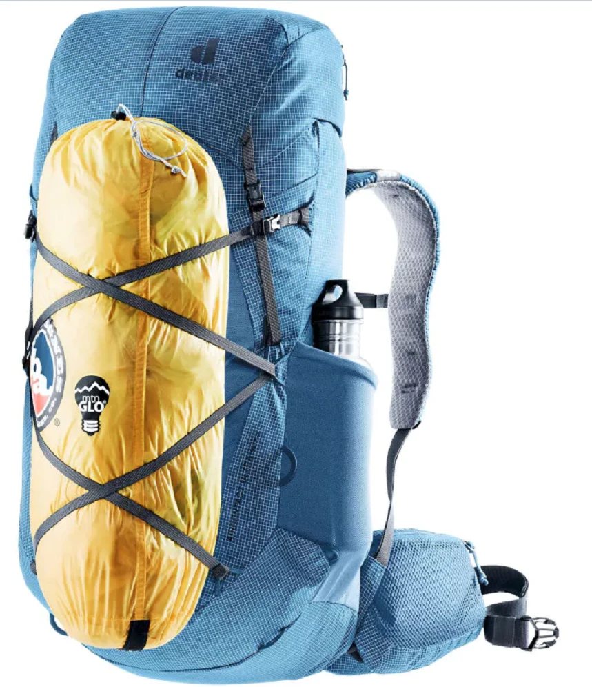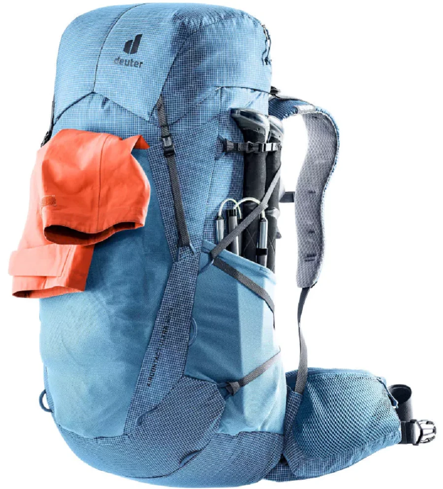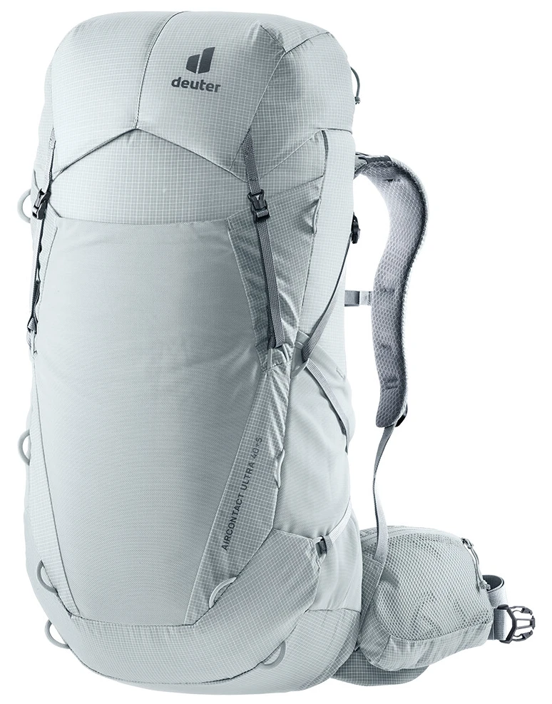 Deuter Aircontact Ultra 40+5 :trekový batoh o objemu 40+5 litrů (celkem 45 litrů). Oblíbí si ho všechny milovnice výletů do přírody, vysokohorské turistiky a horolezectví. Zádový systém Aircontact s novou síťovinou Air Spacer a ventilačním kanálem. Ramenní popruhy ActiveFit jsou anatomicky tvarované, a vyrobené z pěny potažené na dotek příjemnou síťovinou. V oblasti ramen najdete stabilizační pásky. Bederní pás je dostatečně široký a měkce polstrovaný. Navíc zde najdete praktickou kapsu na uložení mobilního telefonu.