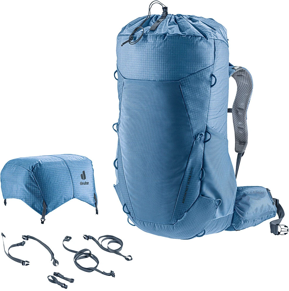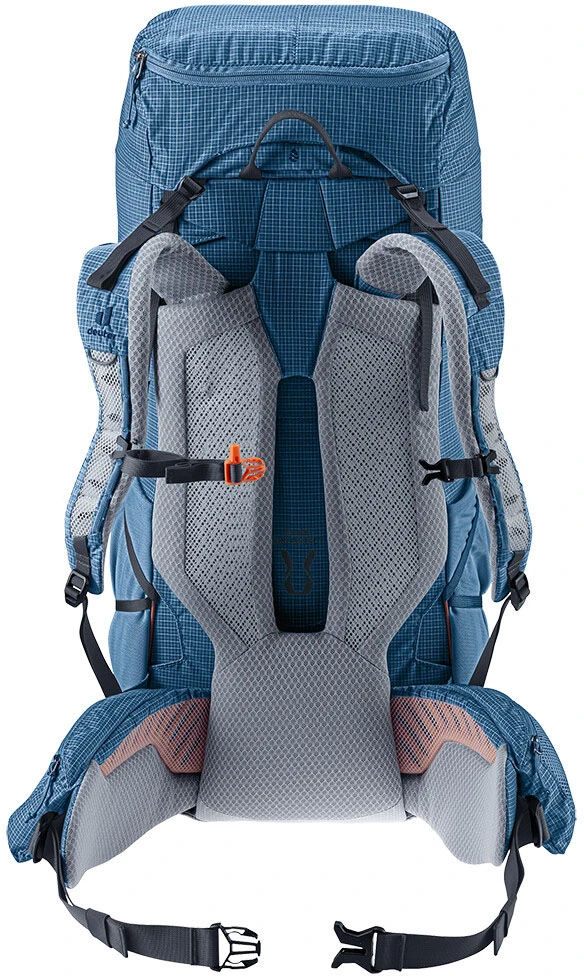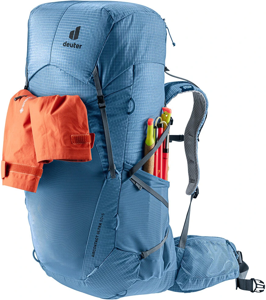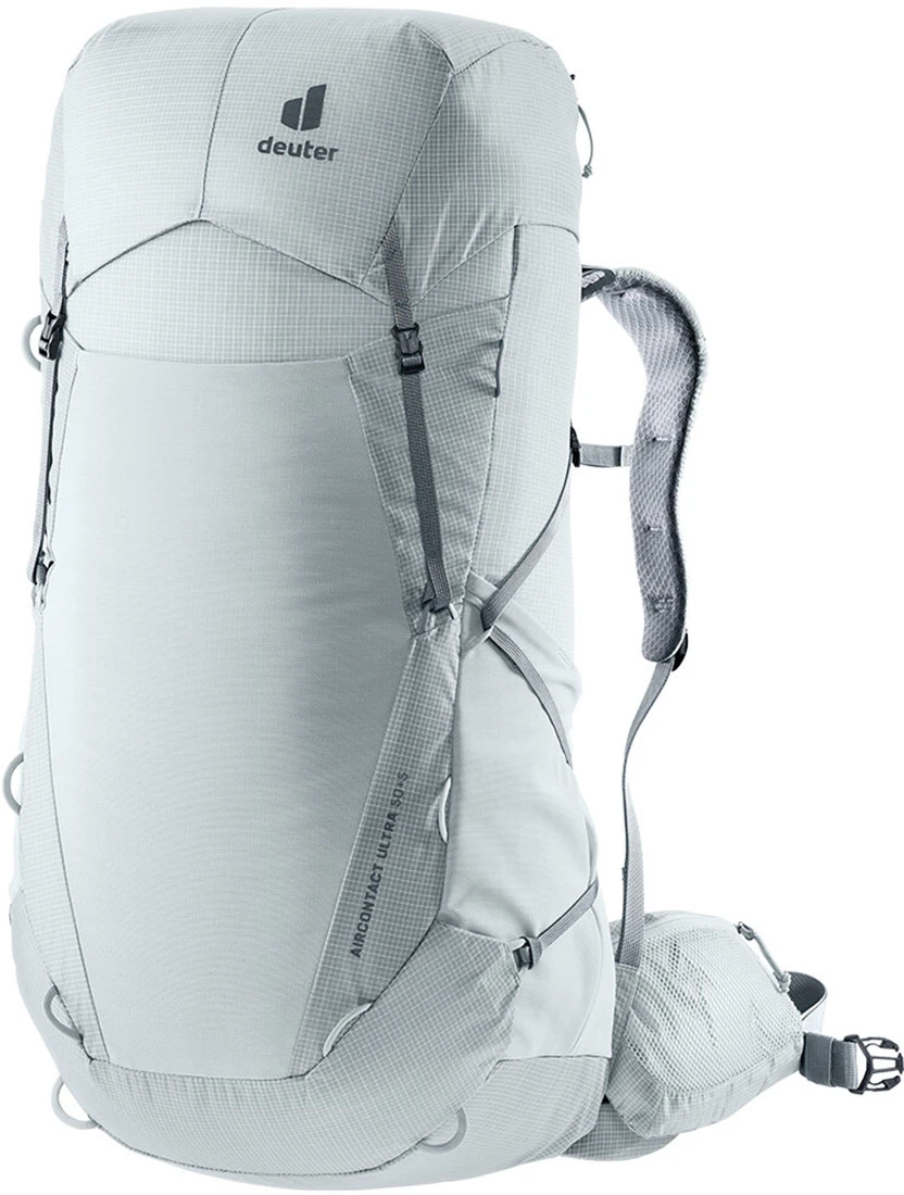 Deuter Aircontact Ultra 50+5: Turistický batoh o celkovém objemu 50+5 litrů. Je ideálním řešením, kam uložit oblečení a vybavení na vícedenní túry a pohodlně ho přenášet. Batoh má vyztužený nosný rám, který je vyrobený z pružinové oceli. Rám zajišťuje správnou stabilizaci a rozložení hmotnosti. Profilované ramenní popruhy batohu, jsou vyrobené z polstrované síťoviny, která je velmi příjemná na dotek. Tento model má také nastavitelný hrudní popruh, a pohodlný bederní pás s kapsou na drobnosti.