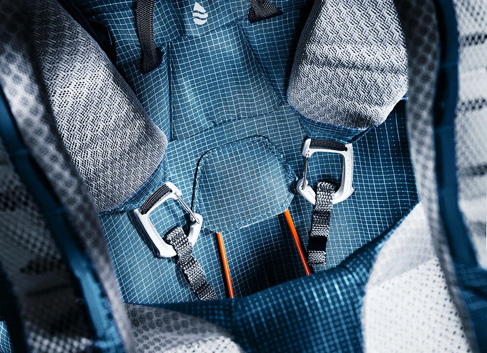 K dispozici zde máte prostornou hlavní komoru s horním přístupem. Komora je zajištěna víkem, na kterém je kapsa uzavíratelná na zip. Najdete zde také síťované kapsy, z nichž dvě jsou na bocích a třetí na přední straně. Na přední straně batohu se nachází velmi praktické kompresní popruhy, pomocí kterých můžete přidělat k batohu další vybavení, jako je například stan, nebo spacák. Využijete je ale také pro zmenšení objemu batohu. Poutka na přední straně batohu, a na ramenních popruzích slouží pro připevnění vybavení pomocí karabin (síťka na helmu, karabiny na lezení apod.).