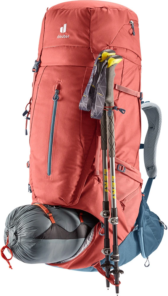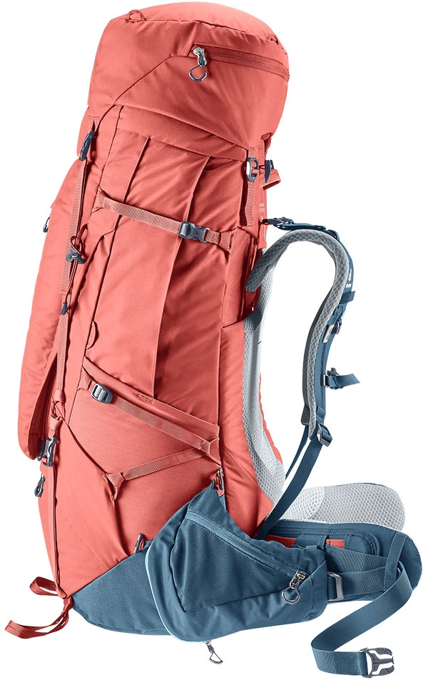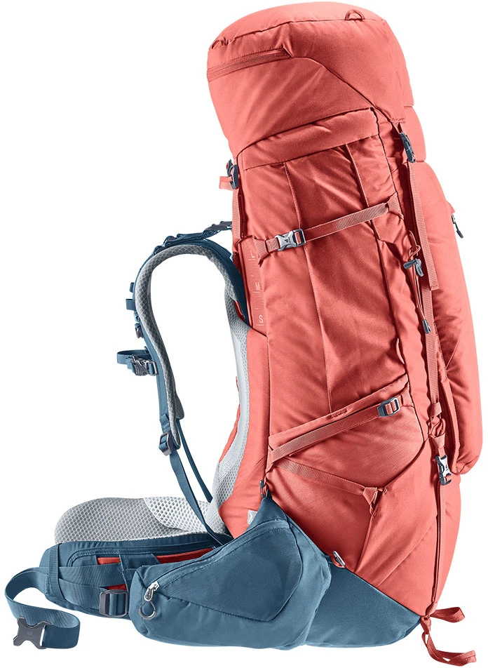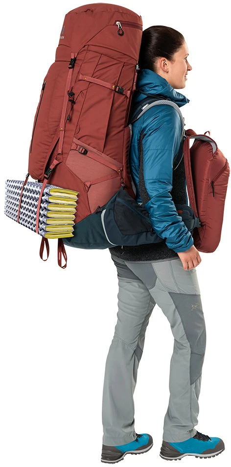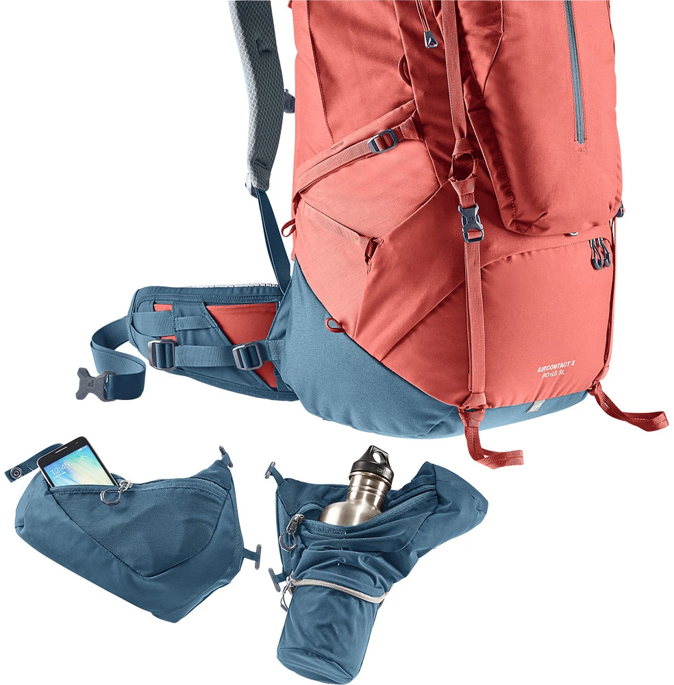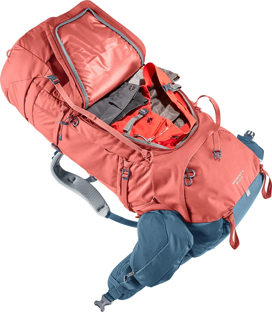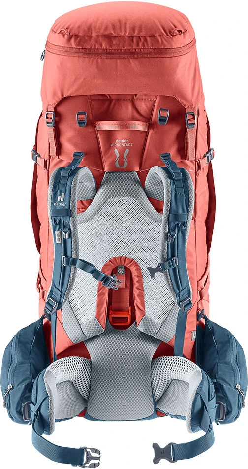 Deuter Aircontact X 80+15 SL: dámský dvoukomorový batoh o objemu 60 až 85 litrů s možností plnění i z přední strany. Má velice pohodlný nastavitelným zádovým systémem Aircontact s novou síťovinou Air Spacer a ventilačním kanálem, ergonomicky tvarovanou bederní podložku a ramenní popruhy. Batoh se hodí na delší treky.