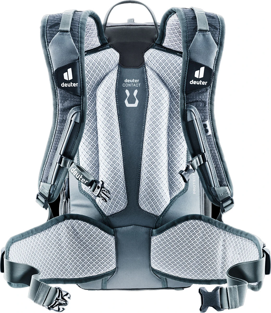 Deuter Attack 20: cyklistický batoh s chráničem páteře vhodný do náročného terénu. Má polstrovaná záda kolem páteře, polstrované ramenní popruhy, polstrovaný bederní pás a nastavitelný hrudní pás, to vám zajistí maximální pohodlí a rozložení zátěže.
