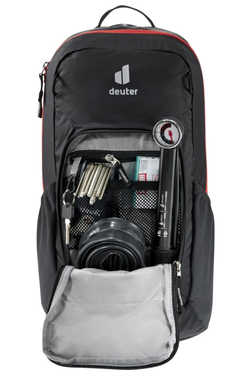 Deuter Bike I 14: jedná se o jeden z menších cyklistických batohů. Jeho objem 14 litrů, je ale dostatečný pro uložení věcí. Hodí se pro všechny cyklisti v městě, i v horském terénu. Pohodlí vám zajistí polstrované panely kolem páteře a anatomicky tvarovaná ramena.