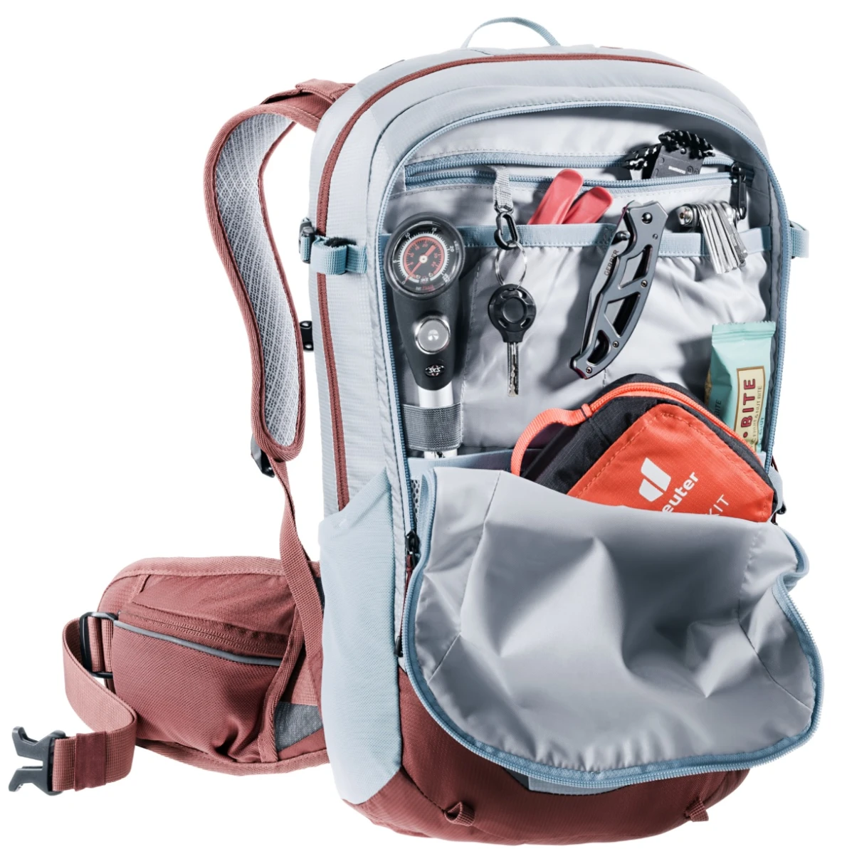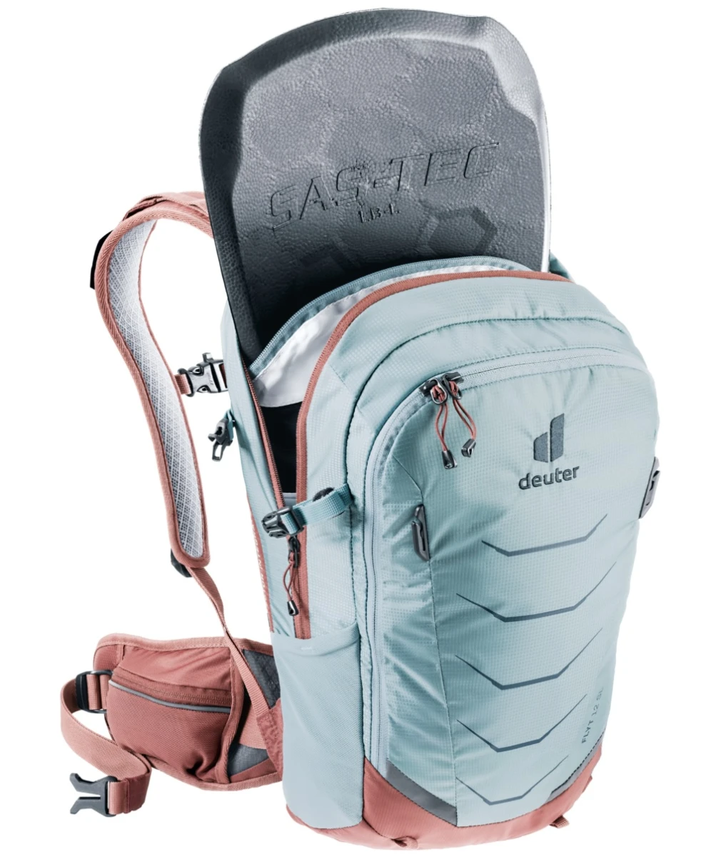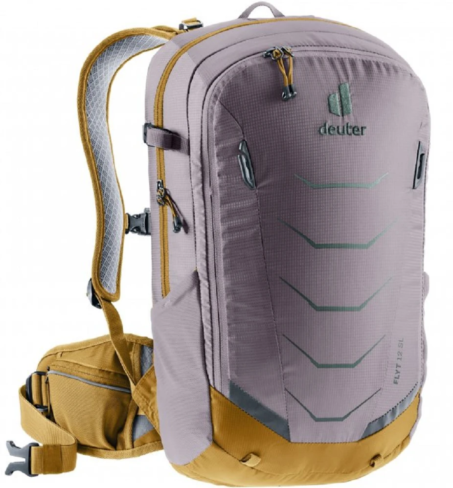Deuter Flyt 12 SL: Dámský cyklistický batoh o objemu 12 litrů, v moderním stylu, který má všechny důležité funkce pro náročné výlety a traily na cyklostezkách i v přírodě. Náročnější uživatelé jistě ocení zádový chránič s certifikací TÜV/GS, který lze snadno vyjmout a poskytuje maximální bezpečí, když se něco pokazí. Zádový sytém má skvělé odvětrávání, a je kratší než u běžného modelu. Je tak přizpůsobený dámské postavě a osobám s malou výškou.