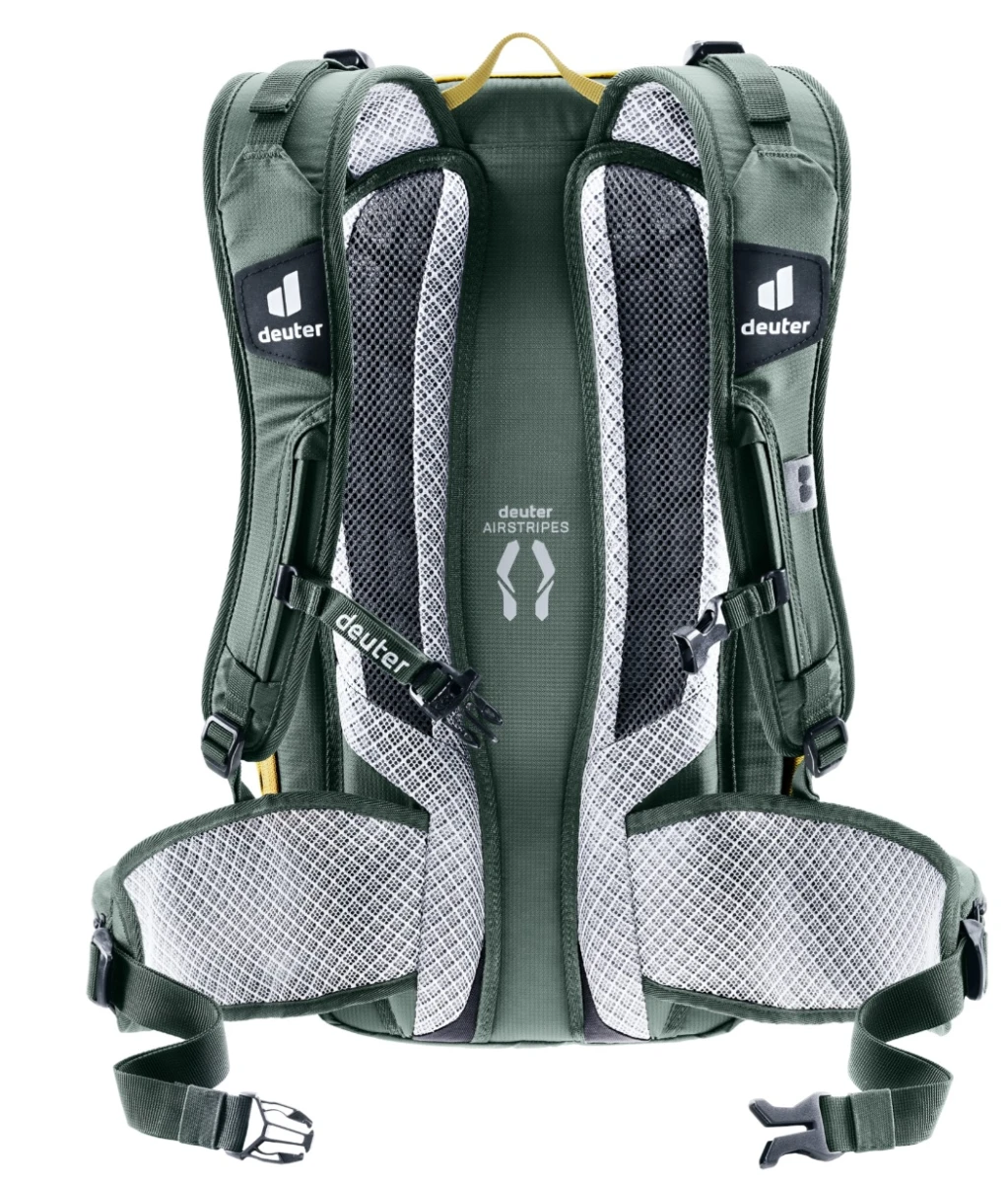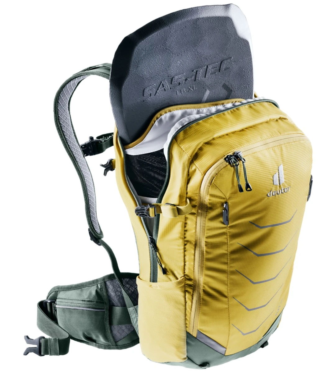 Deuter Flyt 14: Menší lehký batoh na krátké cyklistické výlety a traily, který pokryje všechna vaše očekávání. Batoh je přizpůsobený sjíždění náročného terénu s rizikem pádu. Má bytelný chránič páteře, který prošel certifikací TÜV a v případě potřeby ho můžete klidně i z batohu vyjmout. Zádový systém je dostatečně prodyšný a pohodlný, tak aby vás při jízdě na kole co nejméně omezoval.
