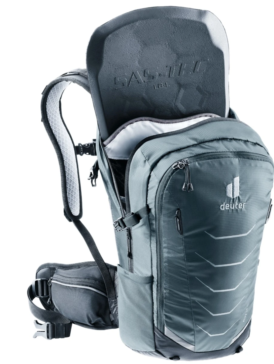 Deuter Flyt 18 SL: Spolehlivý dámský batoh na krátké, i delší cyklistické výlety. Ocení ho také všechny milovnice ježdění v náročném terénu nebo enduro. Batoh má integrovaný chránič páteře, který vám zajistí dostatečnou oporu, a hlavně bezpečnost a ochranu před poraněním páteře. Chránič prošel certifikací TÜV a je vyjímatelný. Svým střihem je přizpůsobený dámské postavě a osobám s menší výškou. (má kratší záda a užší ramenní popruhy, než klasický batoh)