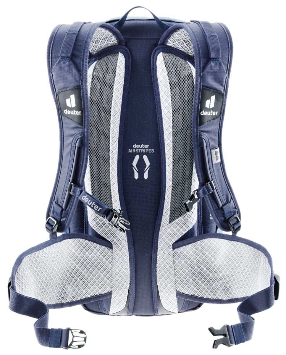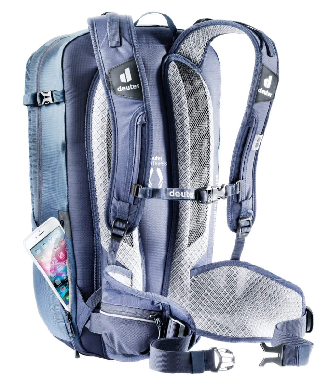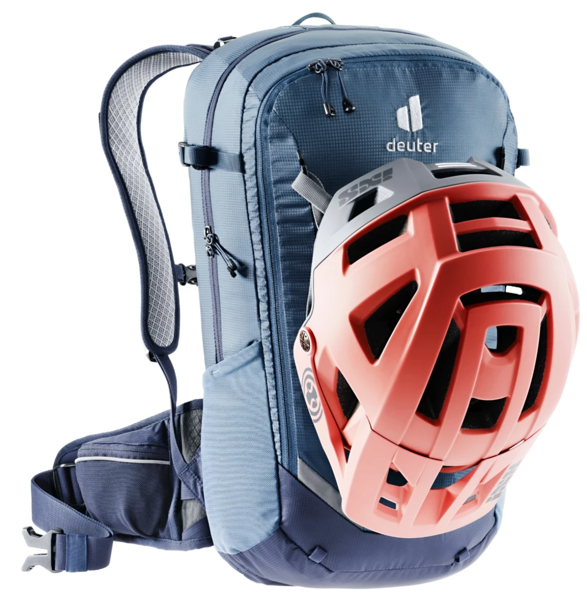 Deuter Flyt 20: Univerzální cyklistický batoh do náročného terénu od německé firmy Deuter. Hodí se hlavně na sjíždění trailů a pro náročnější ježdění enduro. Je vyrobený z pevného a odolného materiálu, a díky tomu odolá i horšímu zacházení a pádům. Zádový systém Airstripes výborně odvětrává a má ergonomicky tvarované popruhy, potažené síťovinou.