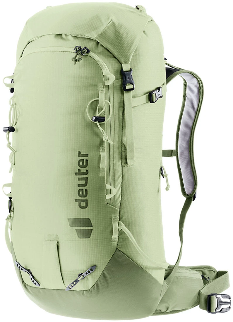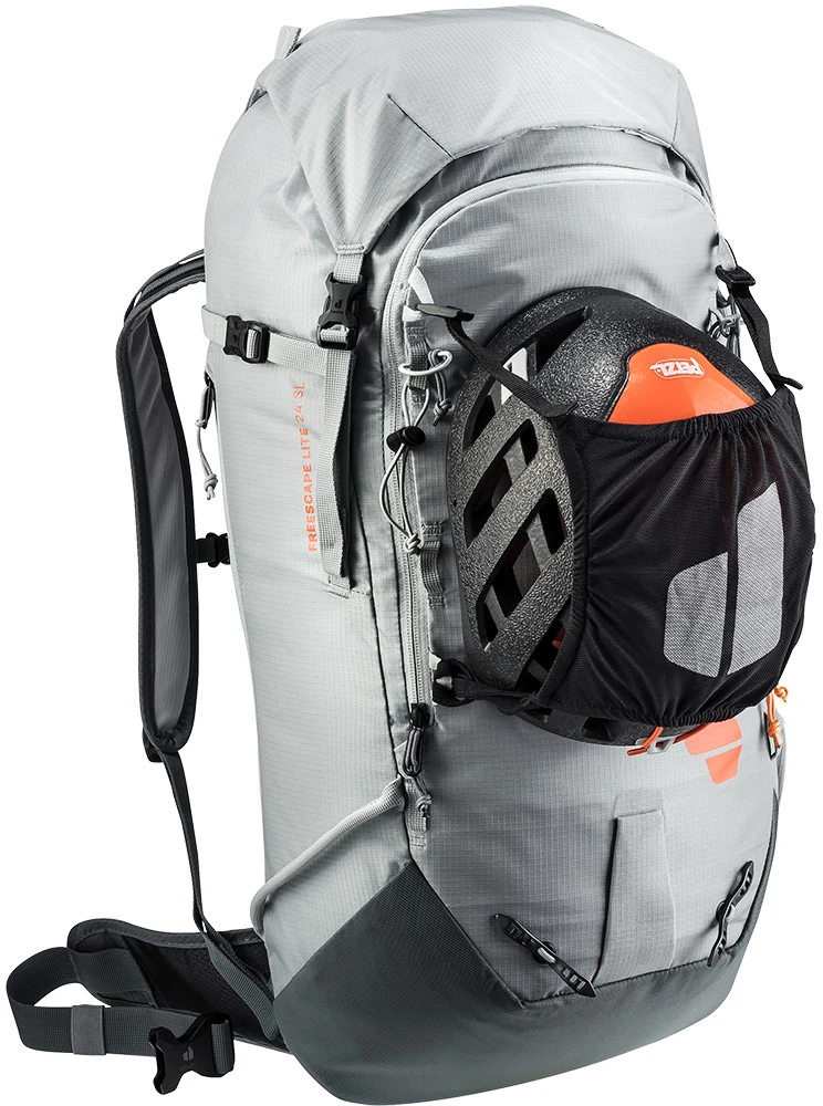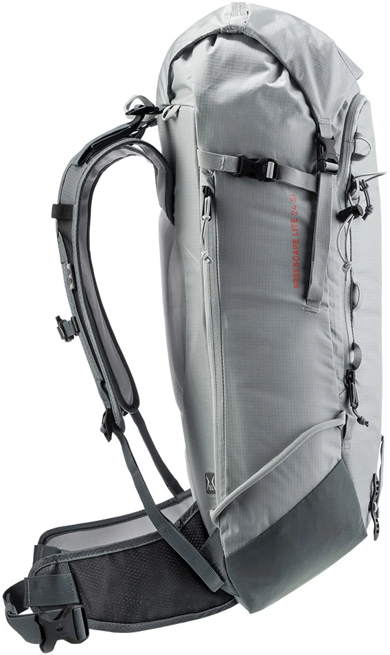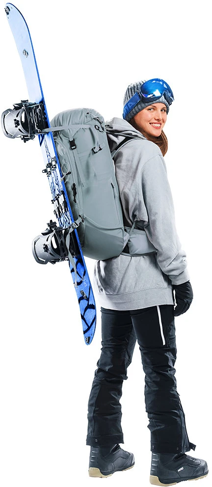 Deuter Freescape Lite 24 SL: lehký dámský skialpinistický batoh na zimní výpravy. Batoh je přizpůsobený dámské postavě, má tedy kratší záda a užší ramena. Záda i ramenní popruhy jsou polstrované. Batoh má kapsu na lavinovou výbavu, upevnění na lyže, snowboard, cepín, mačky, kapsa na hydrovak. Boční vstup umožní přístup do batohu aniž by jste museli sundat připnuté lyže či snowboard.