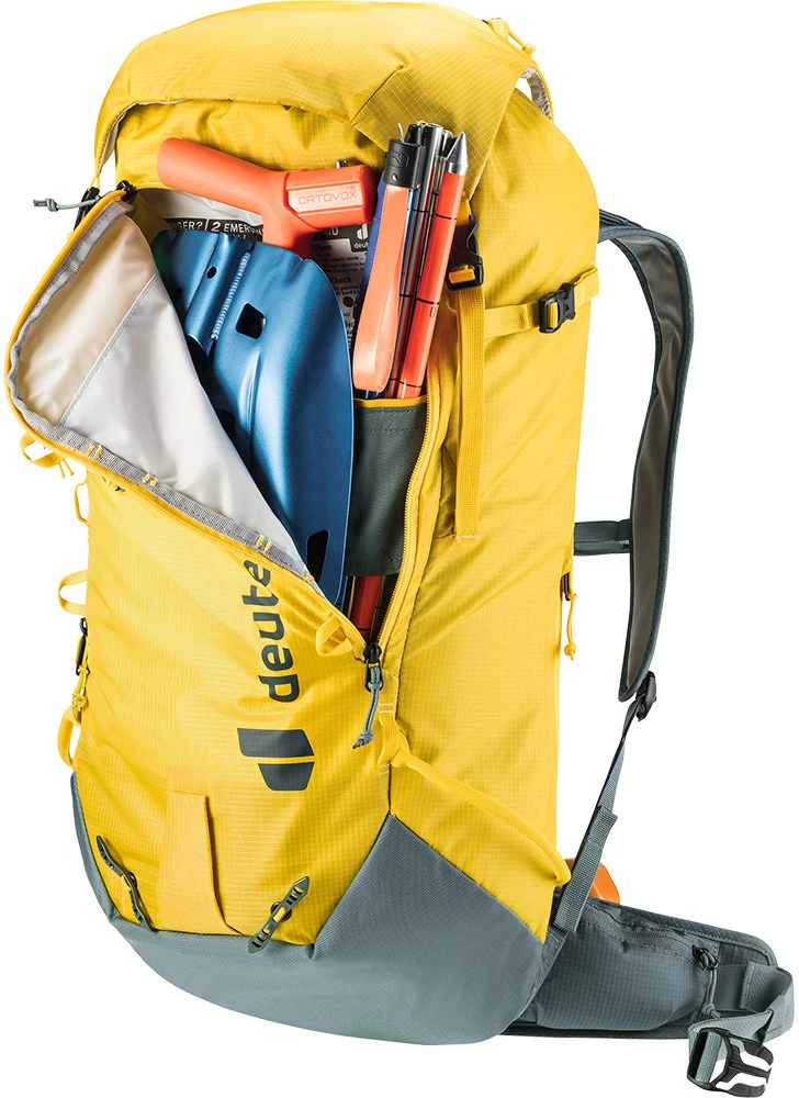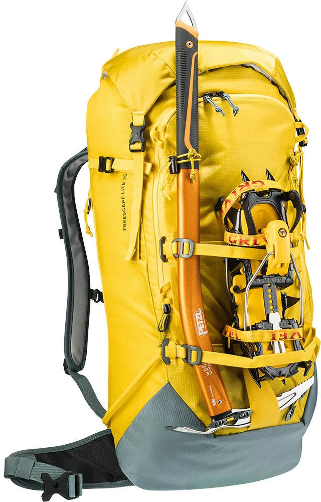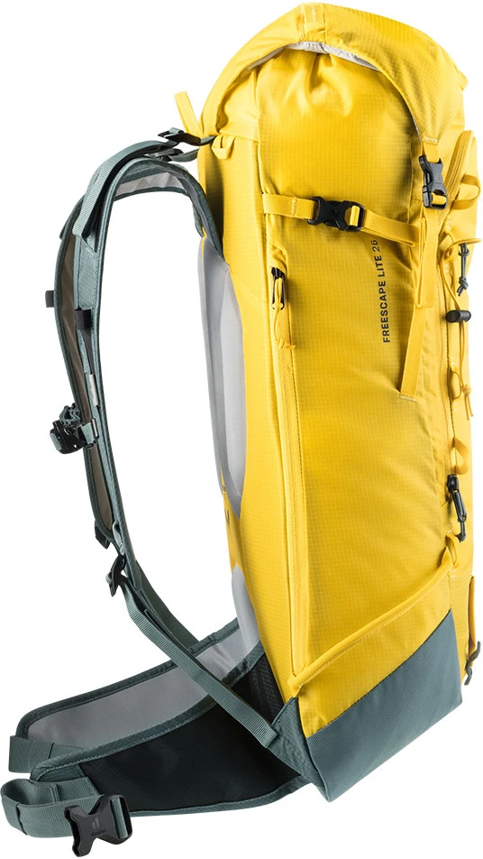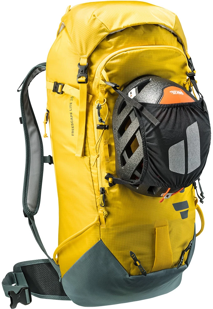 Deuter Freescape Lite 26: lehký skialpinistický batoh na zimní výpravy. Záda i ramenní popruhy jsou polstrované. Batoh má kapsu na lavinovou výbavu, upevnění na lyže, snowboard, cepín, mačky, kapsa na hydrovak. Boční vstup umožní přístup do batohu aniž by jste museli sundat připnuté lyže či snowboard.