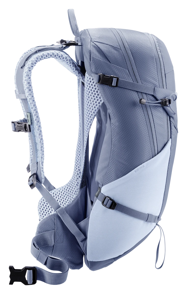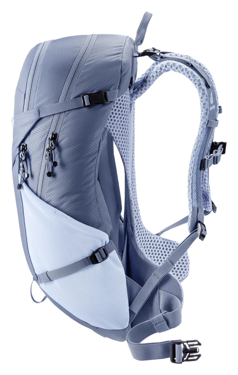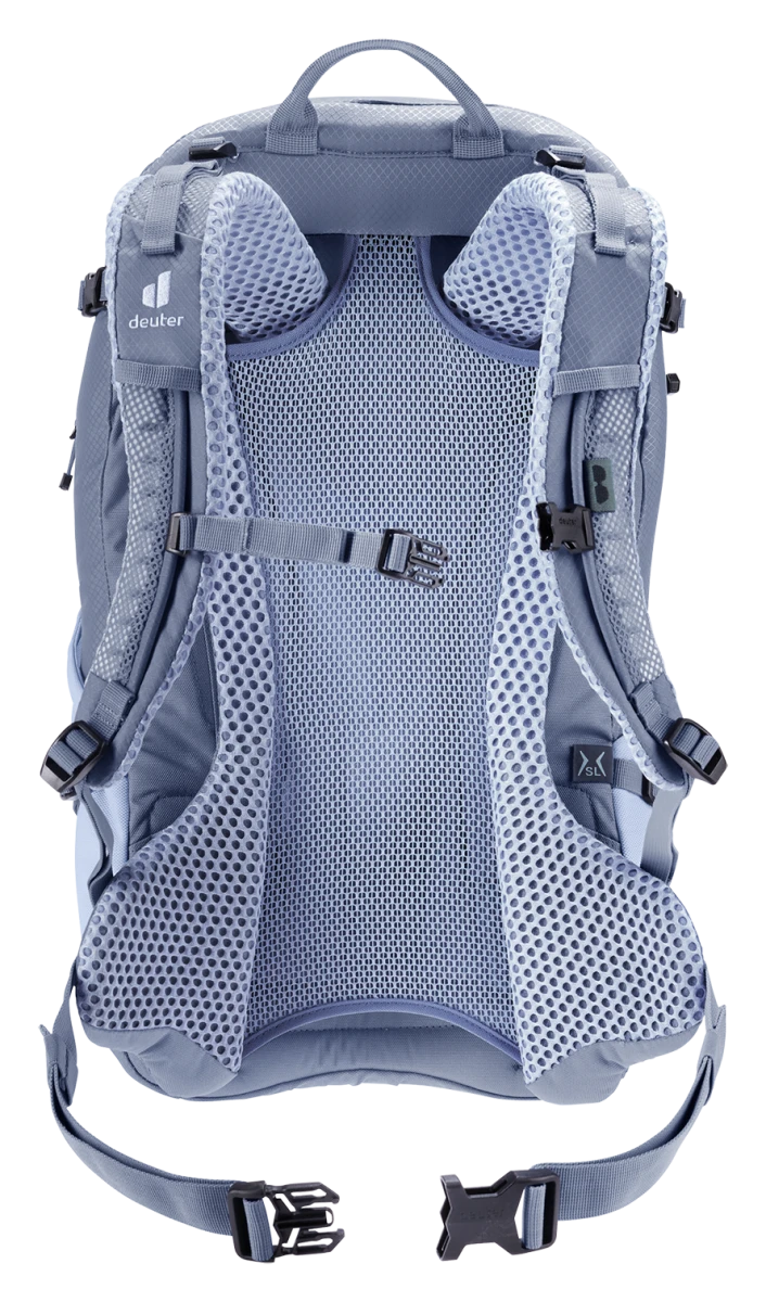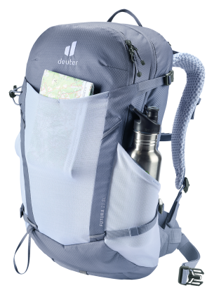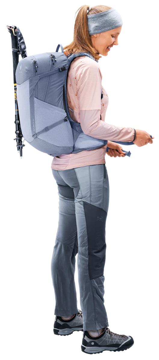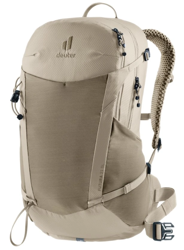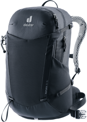 Deuter Futura 21 SL: lehký turistický batoh, navržený pro menší postavy. Zádový systém je tvořeným síťkou pro zvýšené odvětrání zad, polstrované ramenní popruhy a kolem páteře. Kovová výztuha se postará o rozložení váhy.